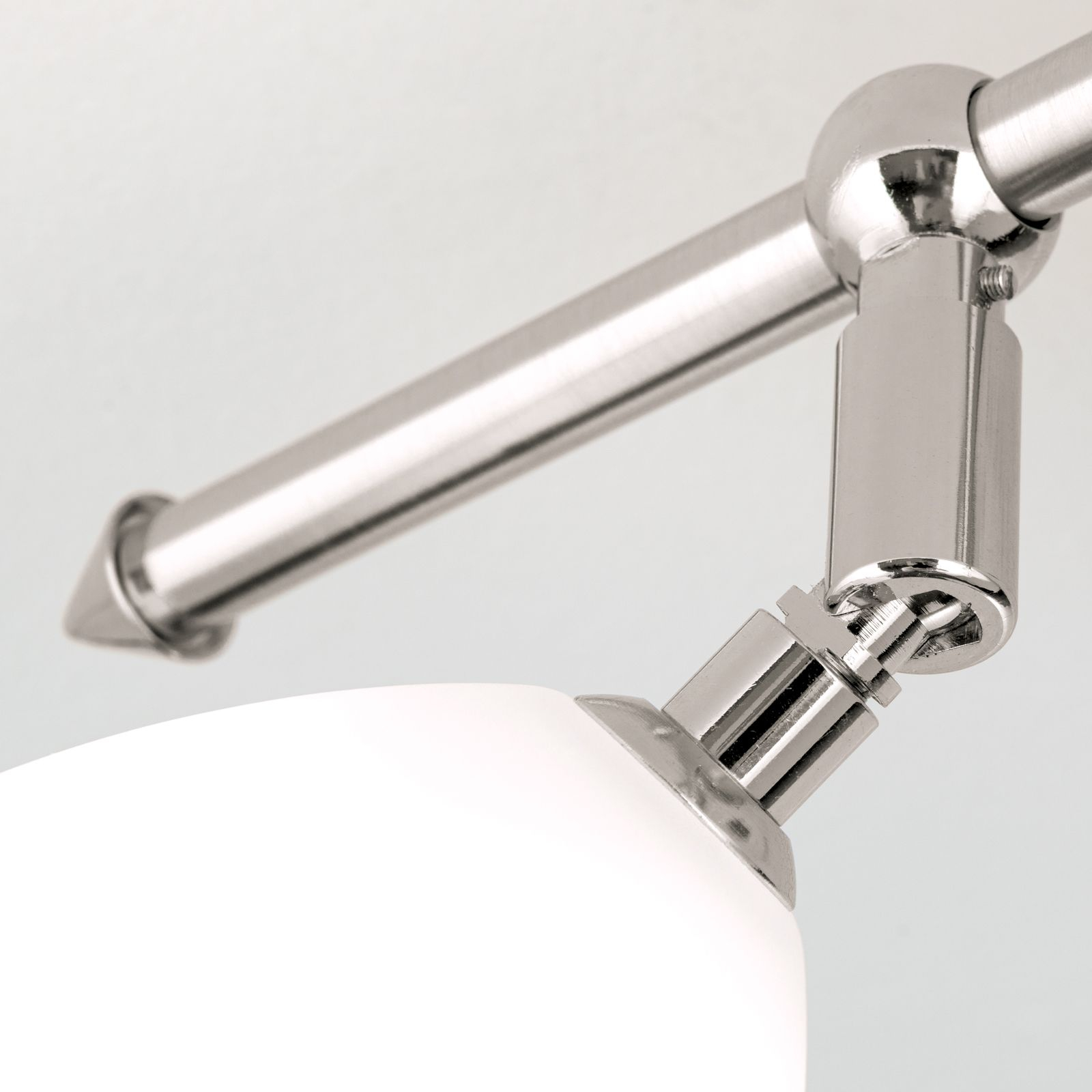 масивен месинг с покритие от сатениран хром, стъкло в цвят бял сатен, насочваеми чашки на осветителното тяло
