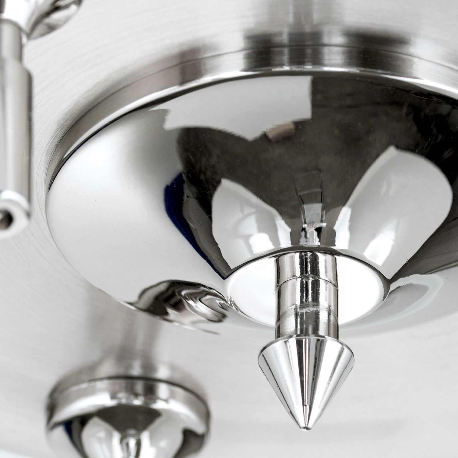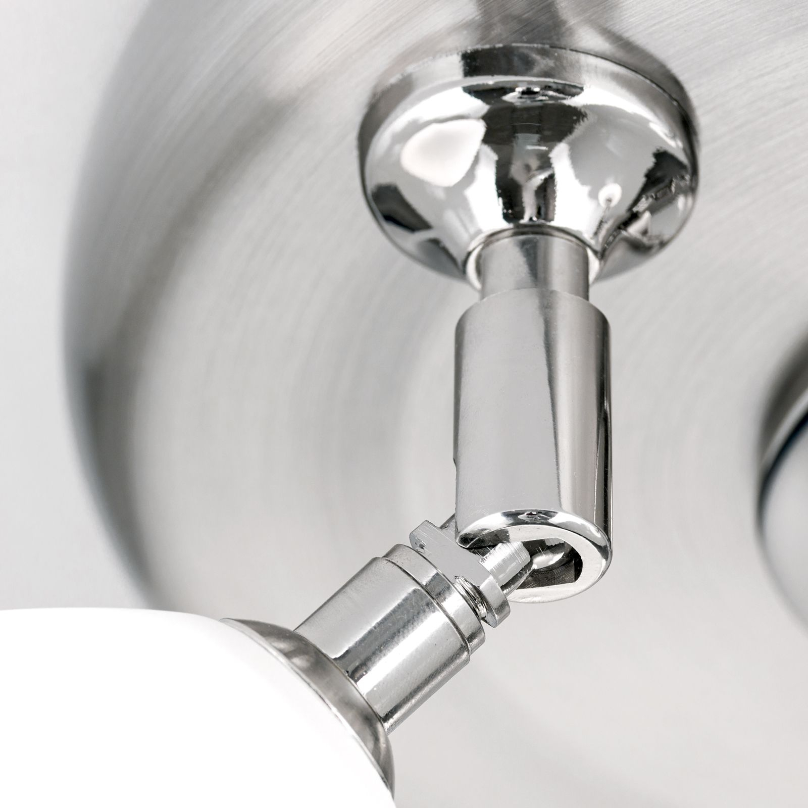 масивен месинг с покритие от сатениран и блестящ хром, стъкло в цвят бял сатен, насочваеми чашки на осветителното тяло