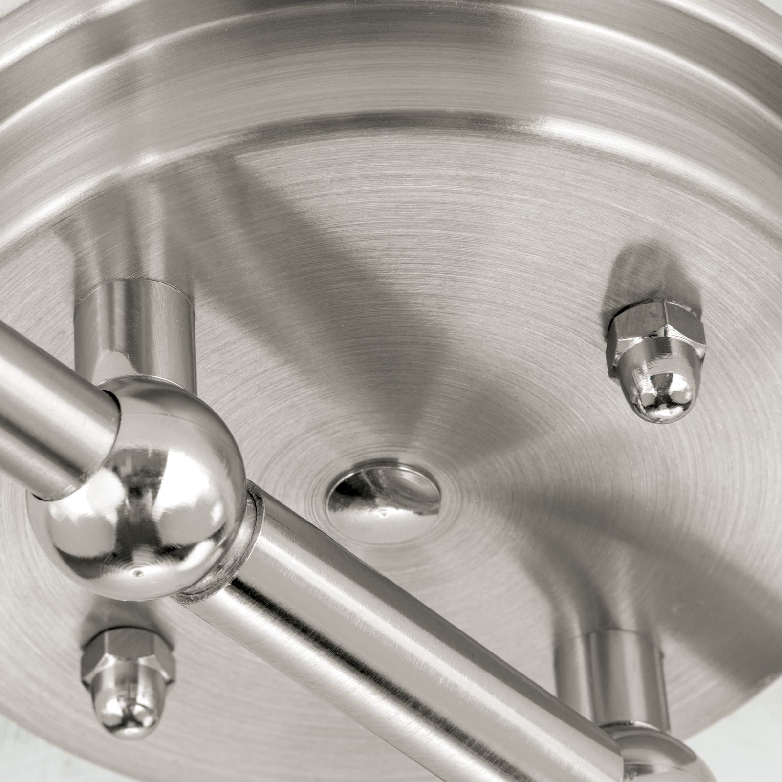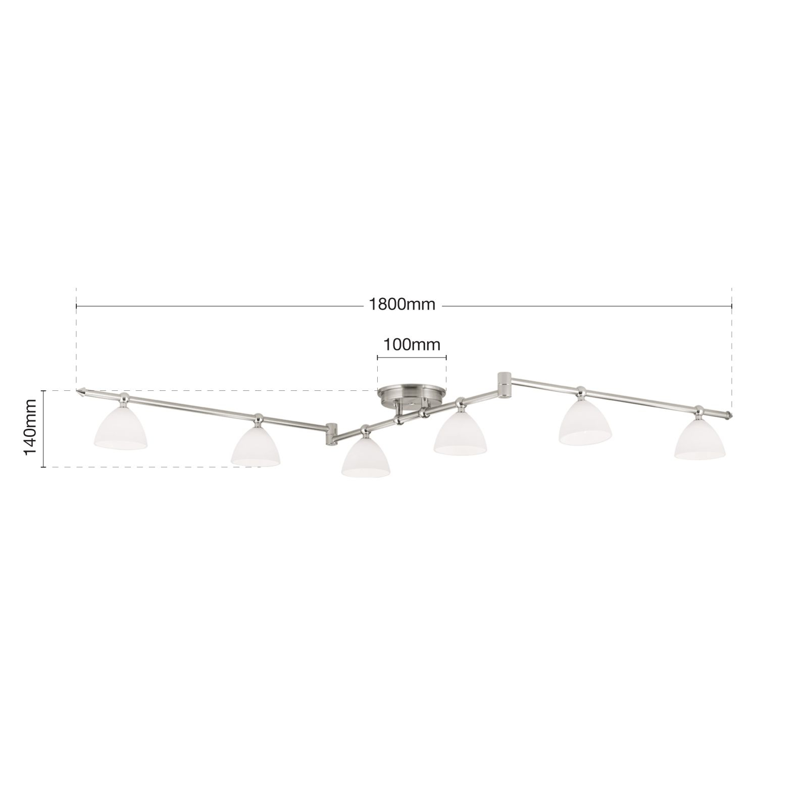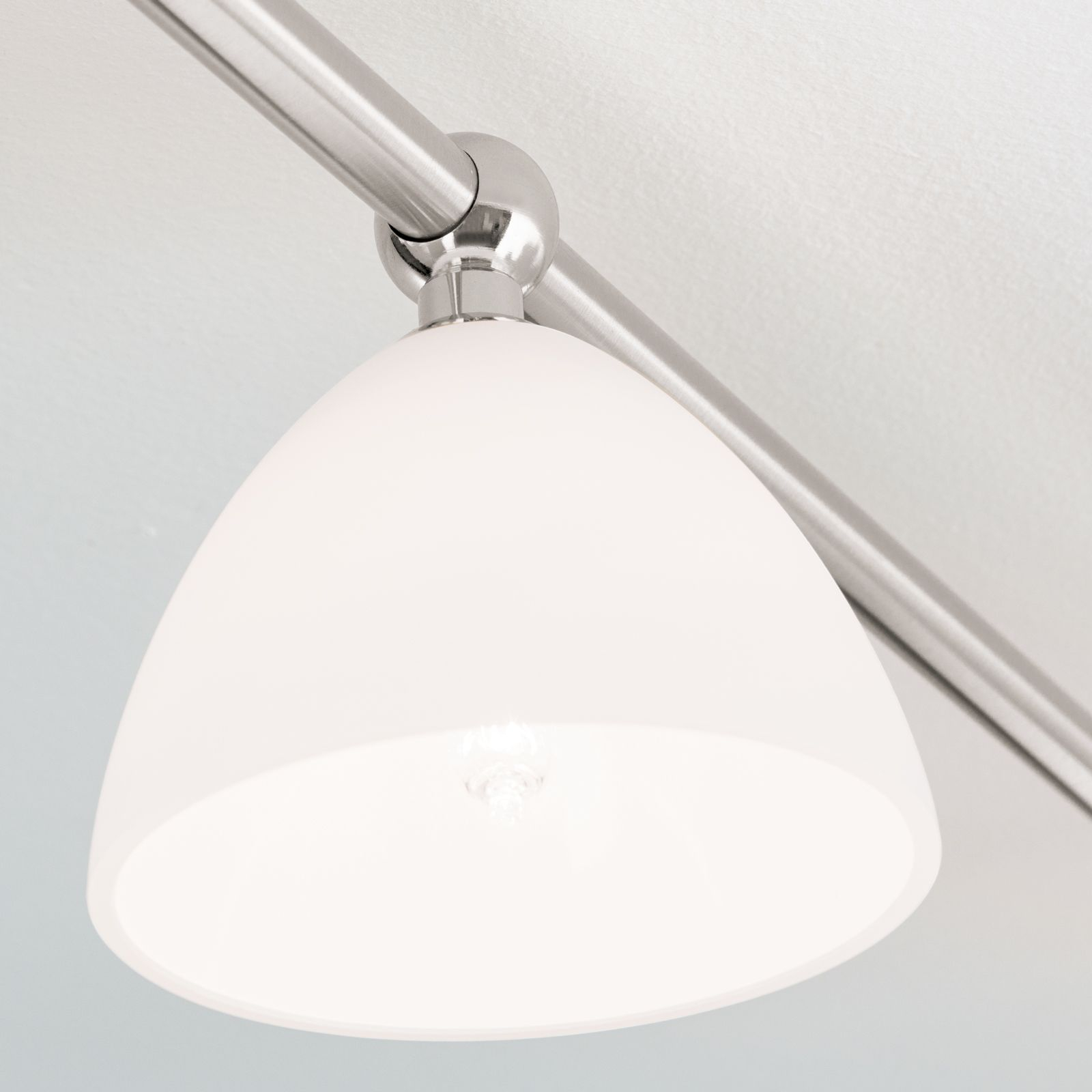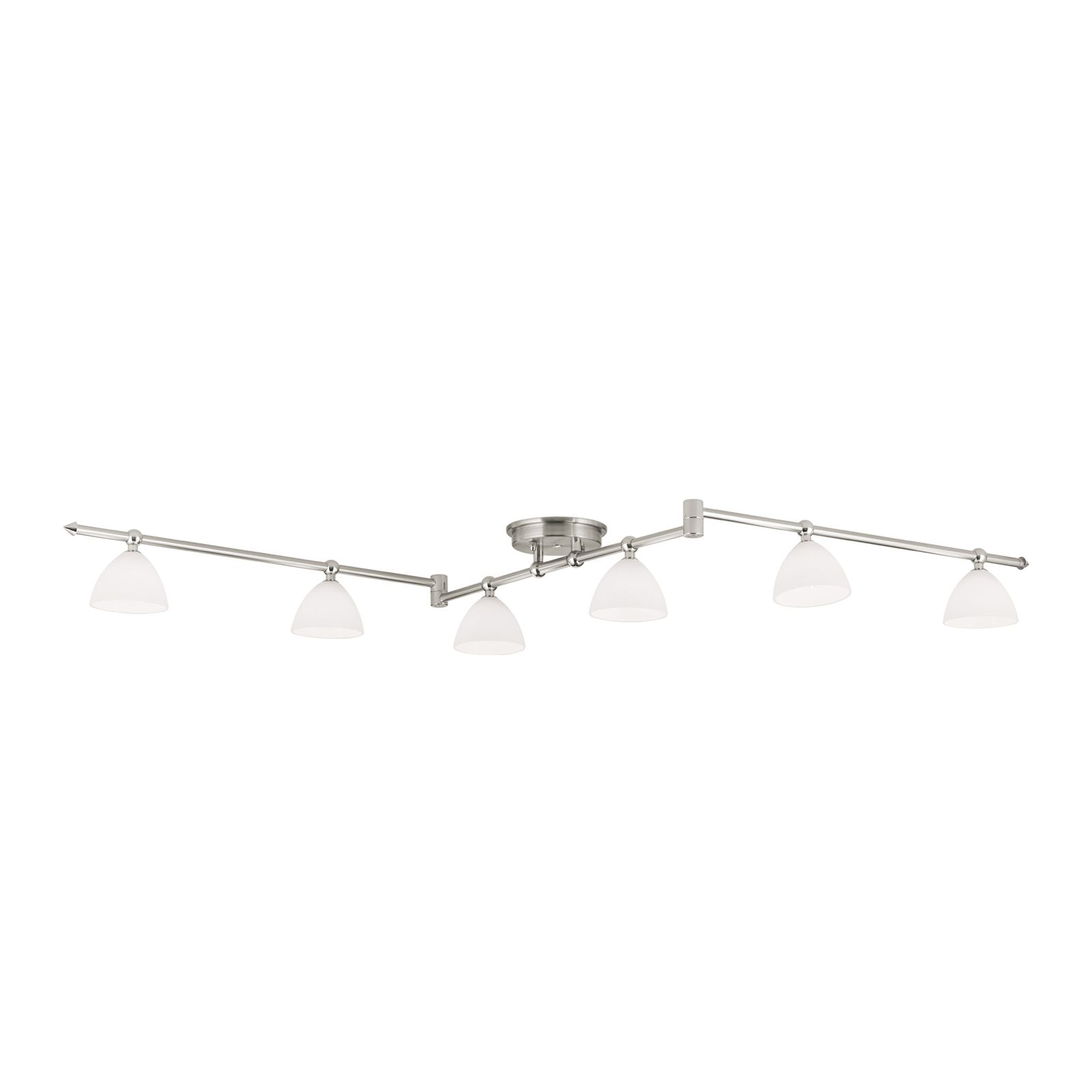 масивен месинг с покритие от сатениран хром, стъкло в цвят бял сатен, насочваеми чашки на осветителното тяло