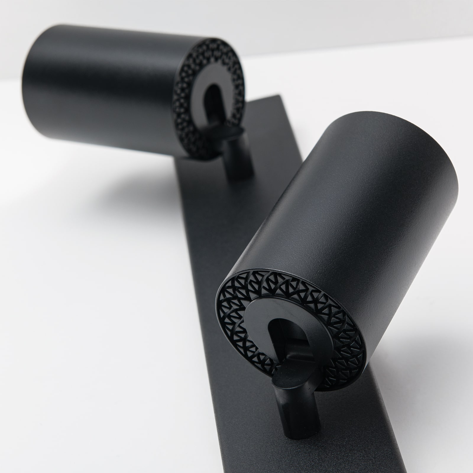 За стила, хармонията и естетиката на обстановката допринасят, както цялостната визия и дизайн на осветителното тяло, така и вложените в изработката му качествени материали, като: стомана в черен цвят.