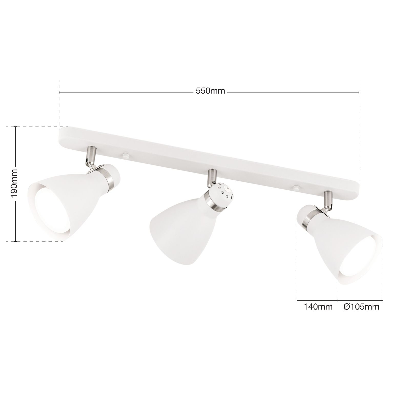 стомана в бял цвят, светлината може да се насочва в избрано направление