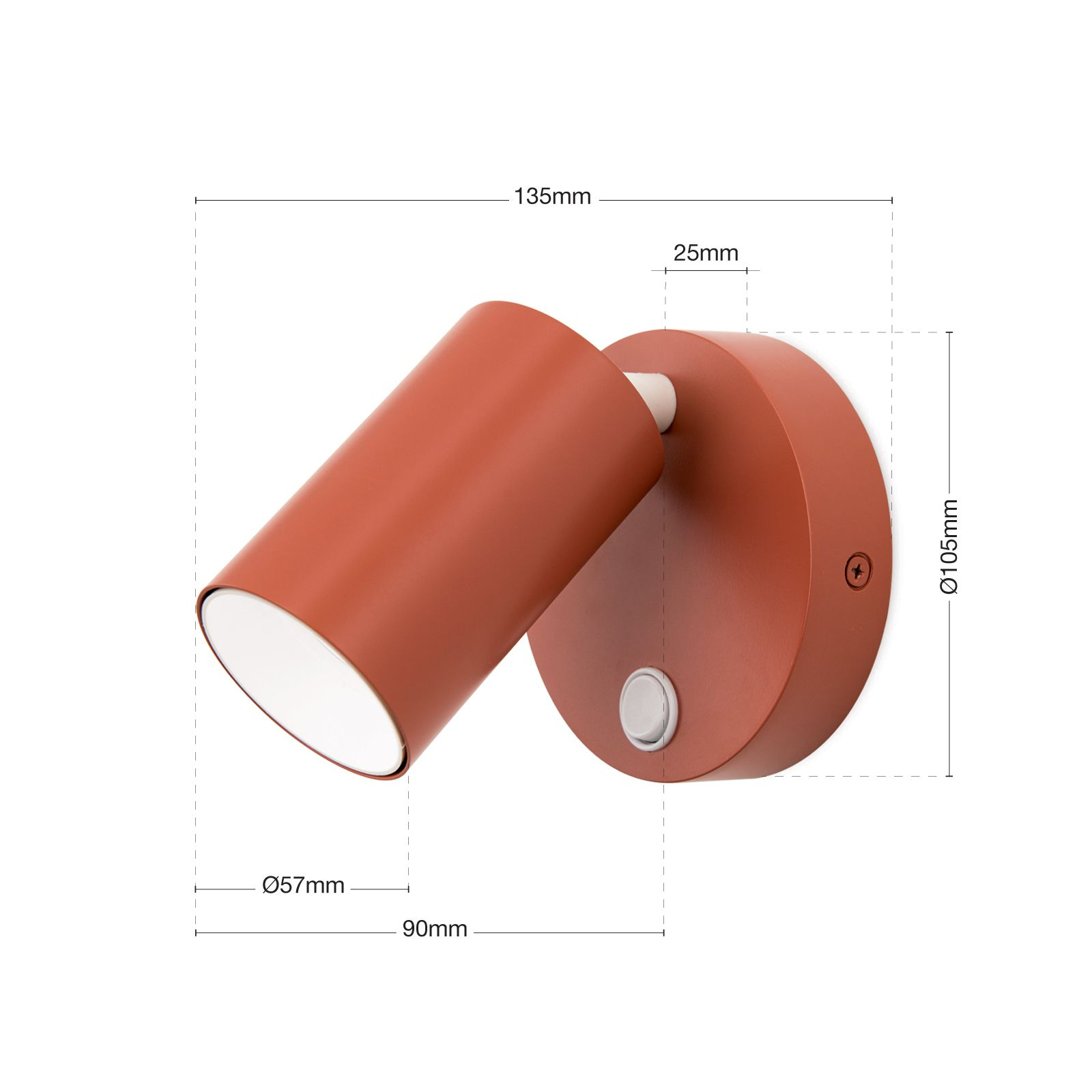 стомана в цвят коралово червено, всеки прожектор може да се насочи индивидуално в желаната посока, превключвател ON/OFF