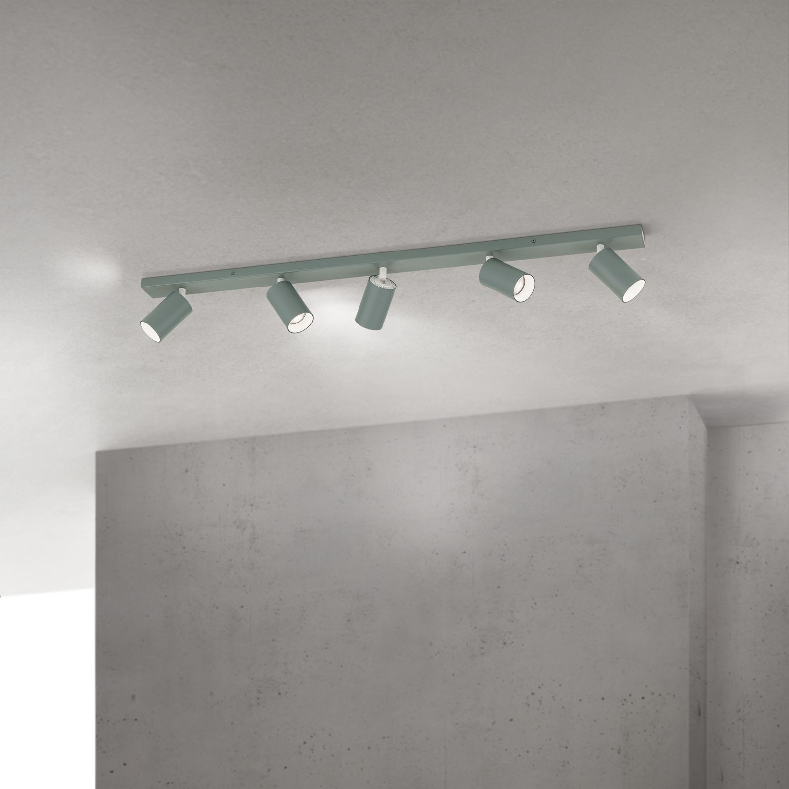 стомана в цвят матово зелено, всеки прожектор може да се насочи индивидуално в желаната посока