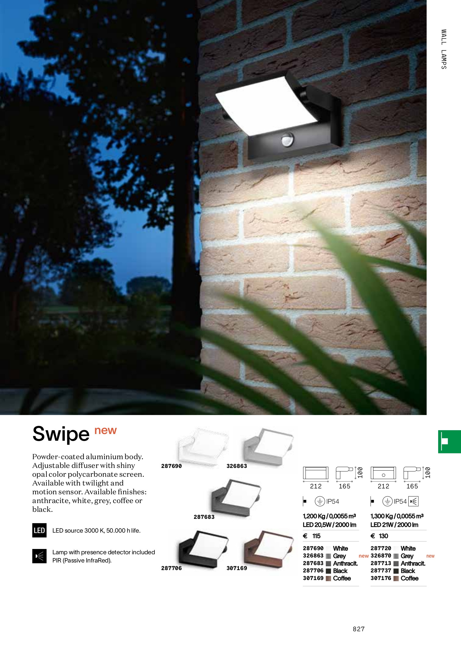 Лед аплик, външна лампа SWIPE AP COFFEE ще осигури комфорт и естетика във всяко помещение, в което се постави. Цялостната визия и дизайн на led лампата и вложените в изработката й материали, като алуминий спрахово покритие в цвят кафе, дифузьор с регулируема посока на светене в цвят бял опал, ще допринесат за един неповторим стил. Благодарение на дългогодишния опит в производството на лед осветление, качествените материали и строгия контрол на качеството на изработка на производителя Ideal-Lux (Италия), SWIPE AP COFFEE е на високо европейско ниво.