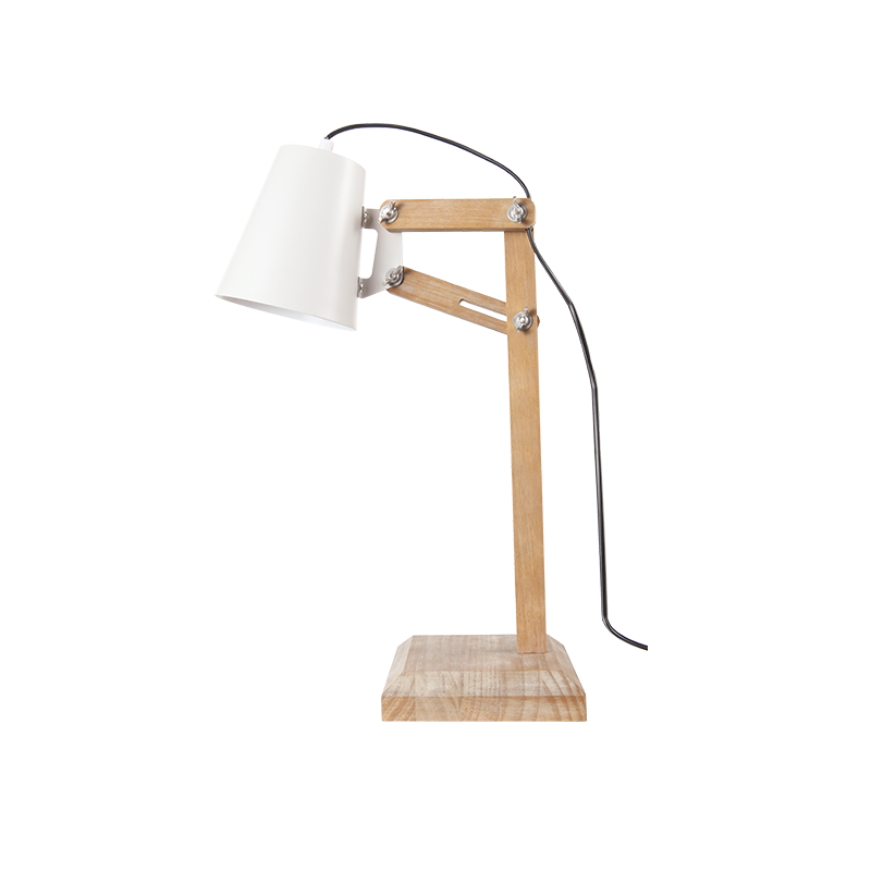 метал в цвят бял мат, дърво в естествен цвят, черен PVC кабел 1.65m, ключ ON/OFF