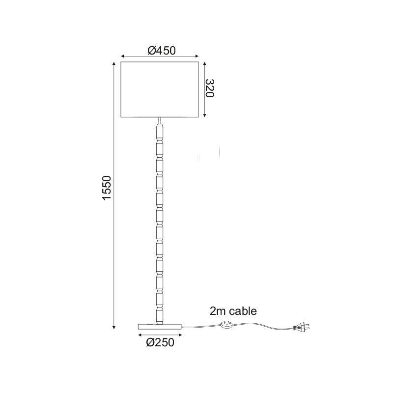 текстил в бяло, дърво в естествен цвят, бял PVC кабел 2m, ключ ON/OFF