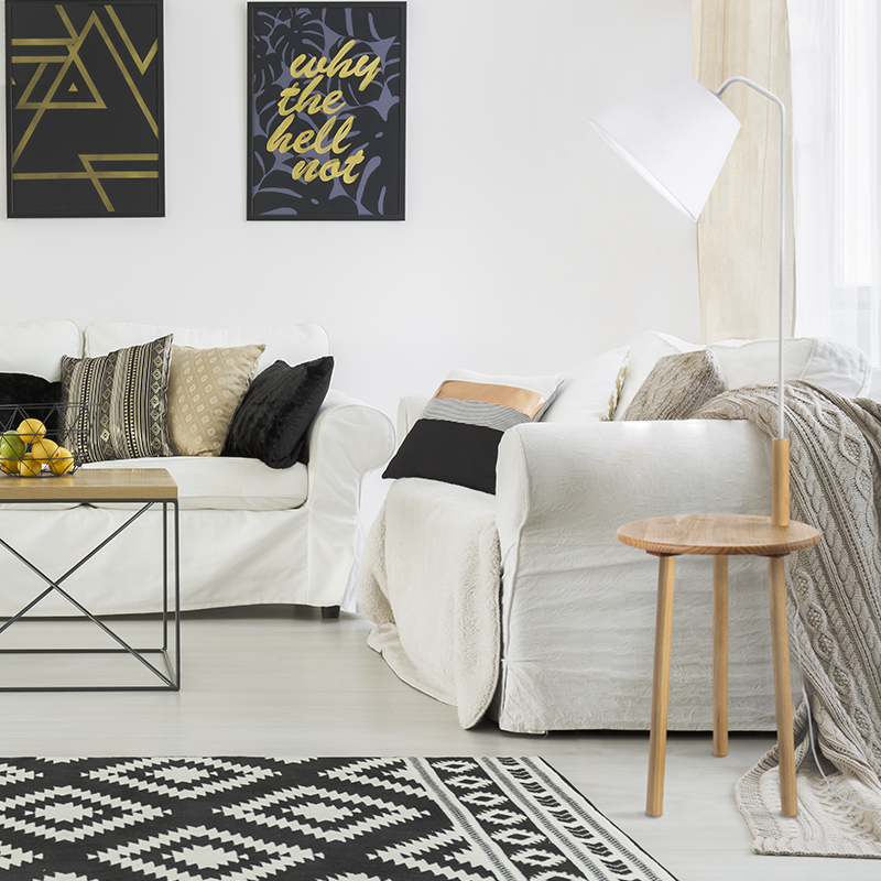 метал в бял цвят, светло дърво, текстил в бяло, кабел 2m в бял цвят, ключ ON/OFF