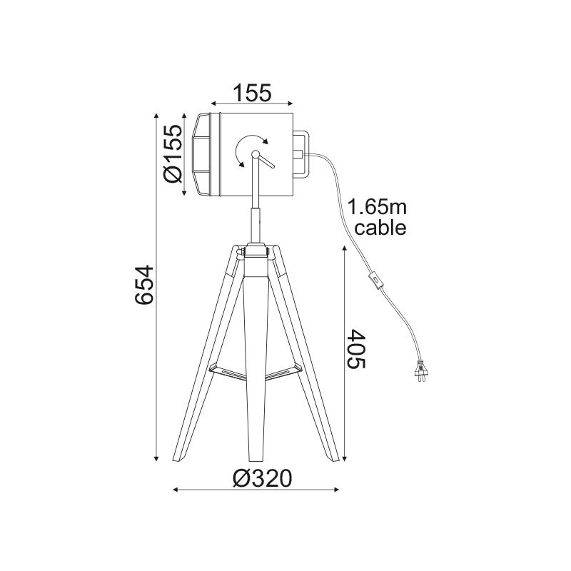 хромиран метал, светло дърво, черен PVC кабел 1.65m, ключ ON/OFF