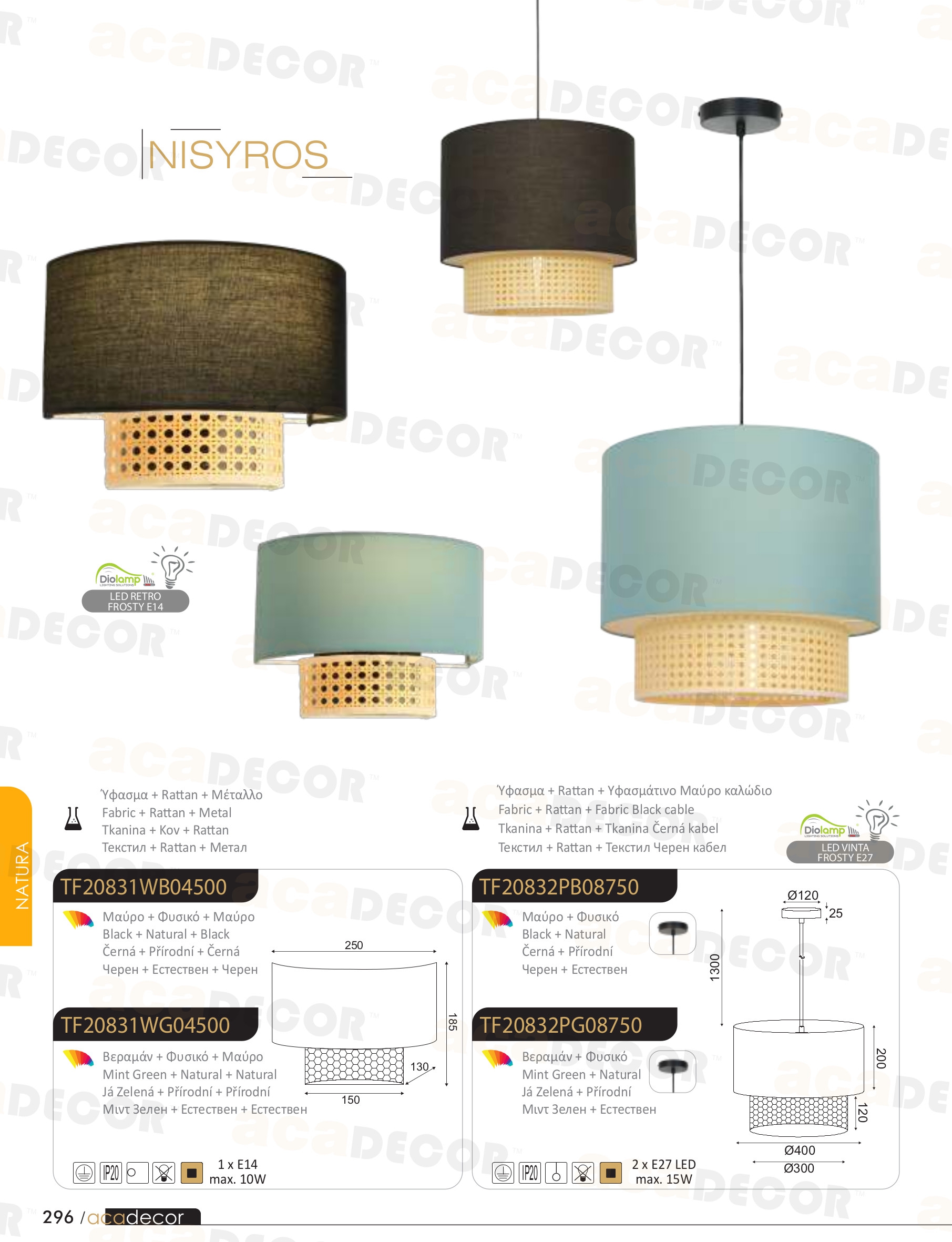 Осветителното тяло TF20831WB ще осигури комфорт и естетика във всяко помещение, в което се постави. Цялостната визия и дизайн на лампата и вложените в изработката й материали, като текстил в черен цвят, ратан в естествен цвят, ще допринесат за един неповторим стил. Благодарение на дългогодишния опит, качествените материали и строгия контрол на качеството на изработка на производителя ACA-Lighting (Гърция), TF20831WB е на високо европейско ниво.