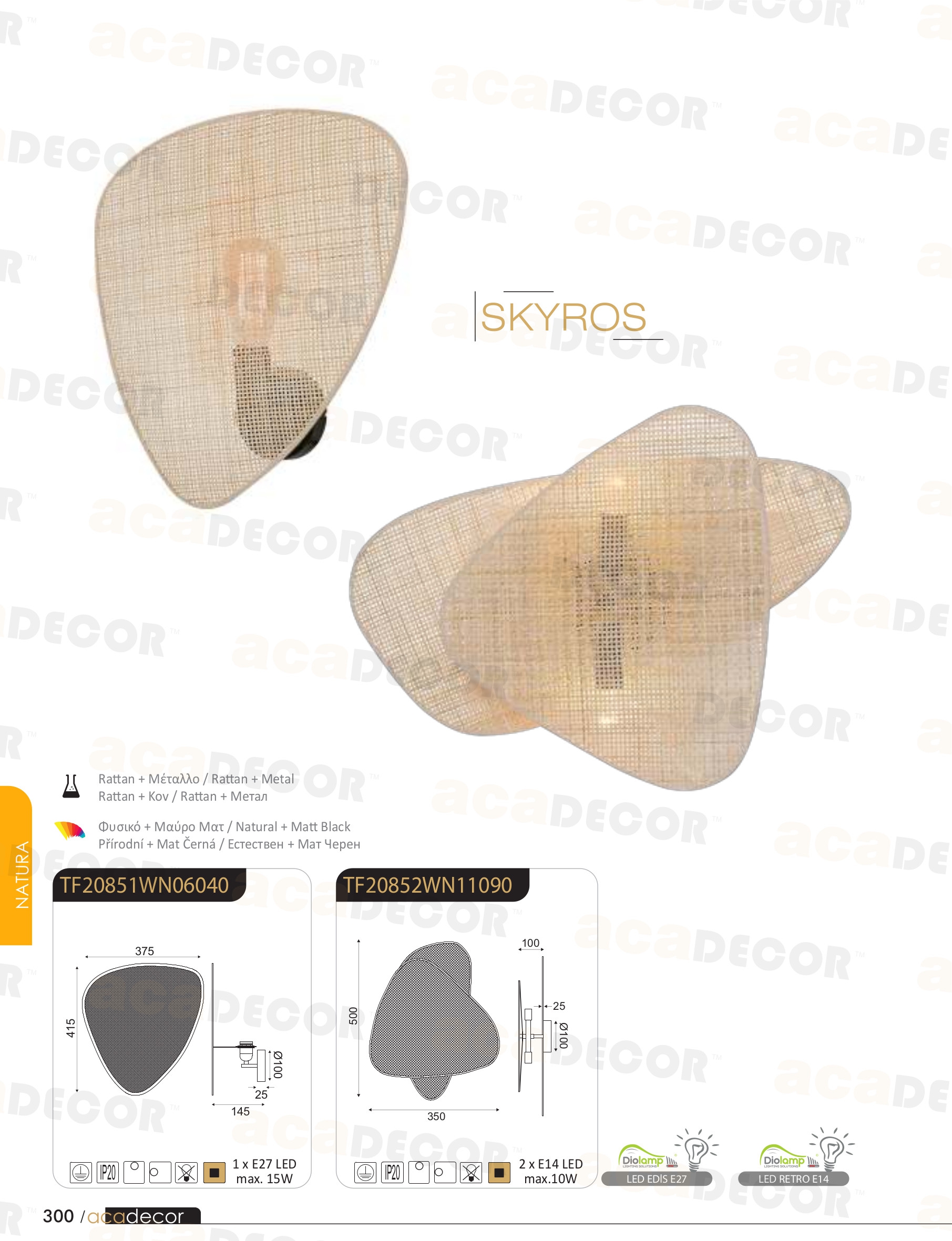 Осветителното тяло TF20851WN ще осигури комфорт и естетика във всяко помещение, в което се постави. Цялостната визия и дизайн на лампата и вложените в изработката й материали, като ратан в естествен цвят, метал в черно, ще допринесат за един неповторим стил. Благодарение на дългогодишния опит, качествените материали и строгия контрол на качеството на изработка на производителя ACA-Lighting (Гърция), TF20851WN е на високо европейско ниво.