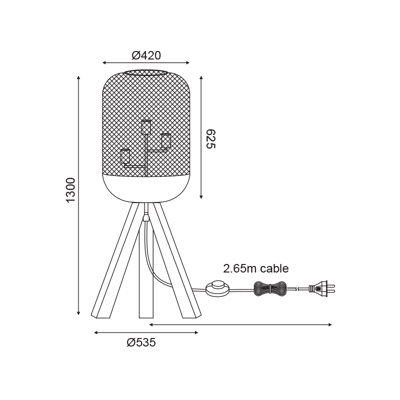 Ел. мощност 1 х 60 W Размери Ф25.5см x 51.5см x 28.5см Производител ACA-Lighting, Гърция