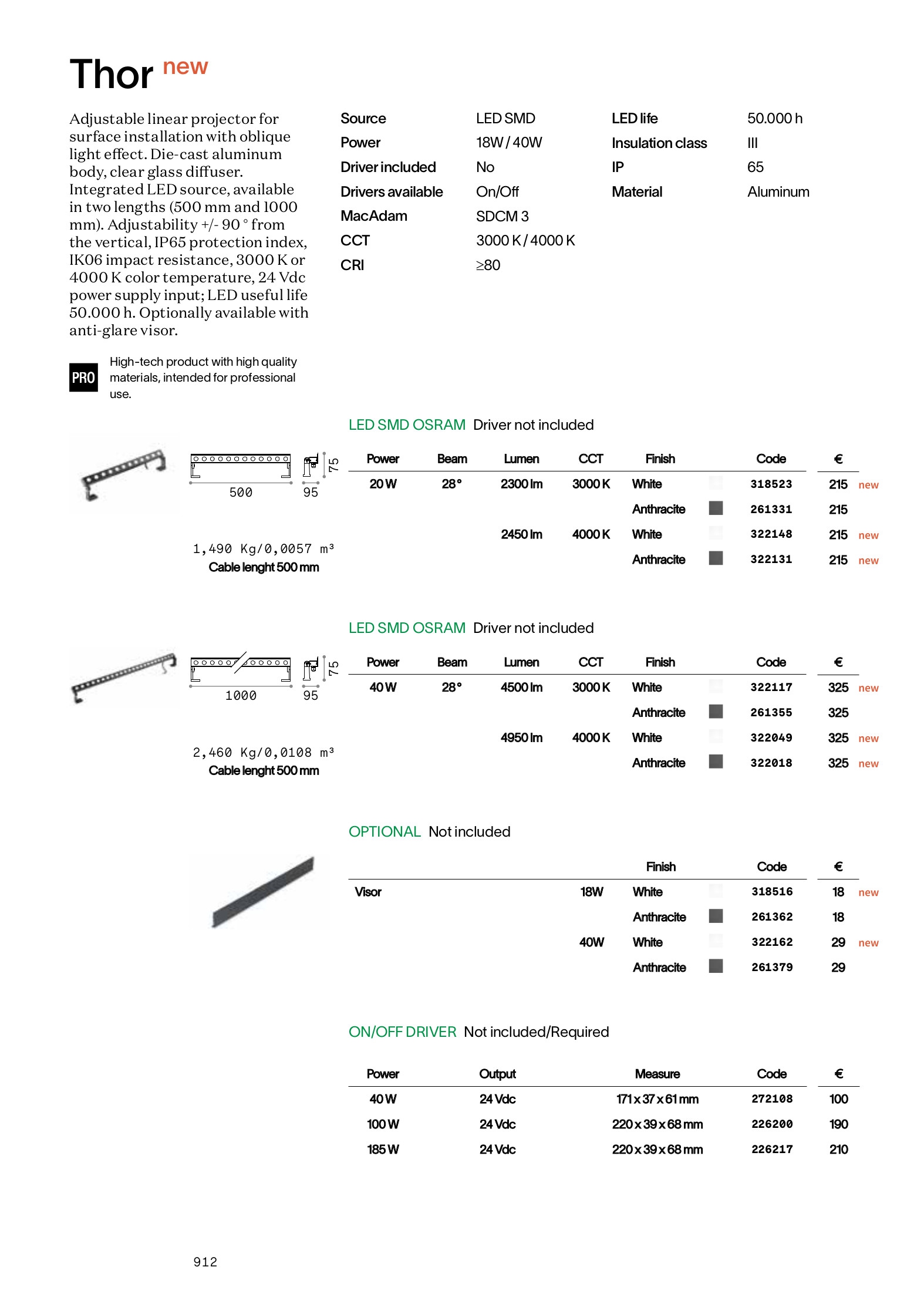 Осветителното тяло THOR PR 40W ANTRACITE 4000K ще осигури комфорт и естетика във всяко помещение, в което се постави. Цялостната визия и дизайн на лампата и вложените в изработката й материали, като тяло от отлят алуминий в черен цвят, регулируем наклон +/- 90°, входящо напрежение 24 VDC, необходим е драйвер 100-240VAC/24VDC, който се купува отделно, ще допринесат за един неповторим стил. Благодарение на дългогодишния опит, качествените материали и строгия контрол на качеството на изработка на производителя Ideal-Lux (Италия), THOR PR 40W ANTRACITE 4000K е на високо европейско ниво.
