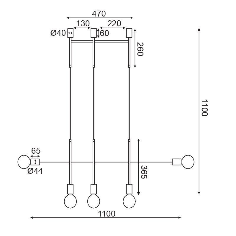 Ел. мощност 3 х 60 W Размери 64.2см x 36.5см x 110см Производител ACA-Lighting, Гърция