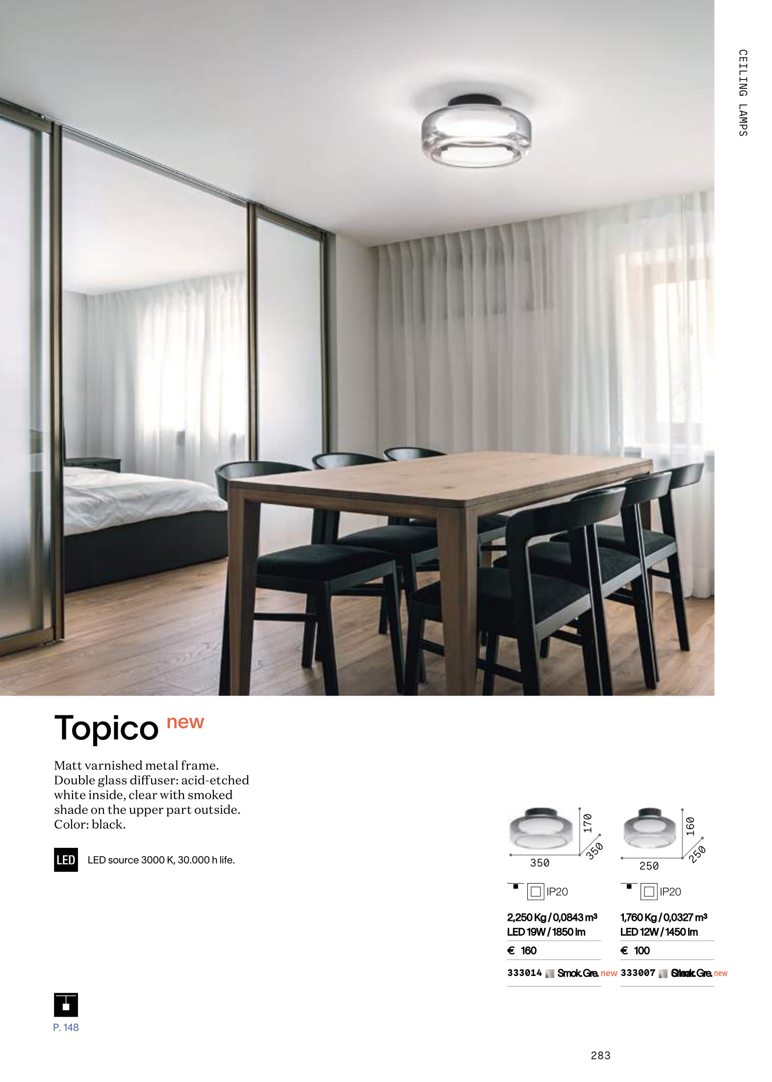 Лед плафон TOPICO PL D35 ще осигури комфорт и естетика във всяко помещение, в което се постави. Цялостната визия и дизайн на led лампата и вложените в изработката й материали, като метал в цвят черен мат, двоен дифузер - гравиран бял вътрешен и прозрачен опушен отвън, ще допринесат за един неповторим стил. Благодарение на дългогодишния опит в производството на лед осветление, качествените материали и строгия контрол на качеството на изработка на производителя Ideal-Lux (Италия), TOPICO PL D35 е на високо европейско ниво.