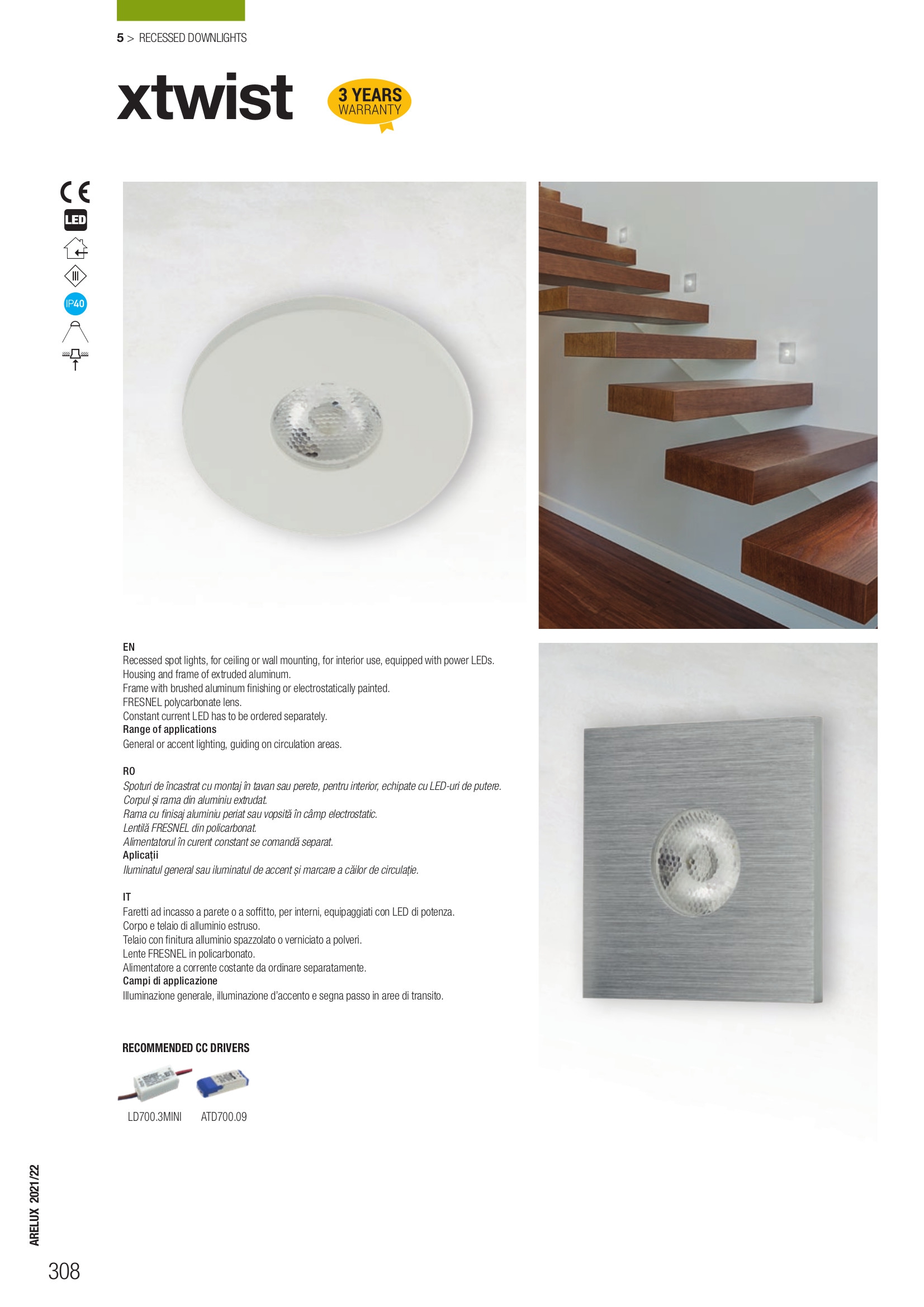 корпус и рамка от екструдиран алуминий, рамка с финиш - надраскан алуминий, поликарбонатна леща FRESNEL, драйвърът се поръчва отделно