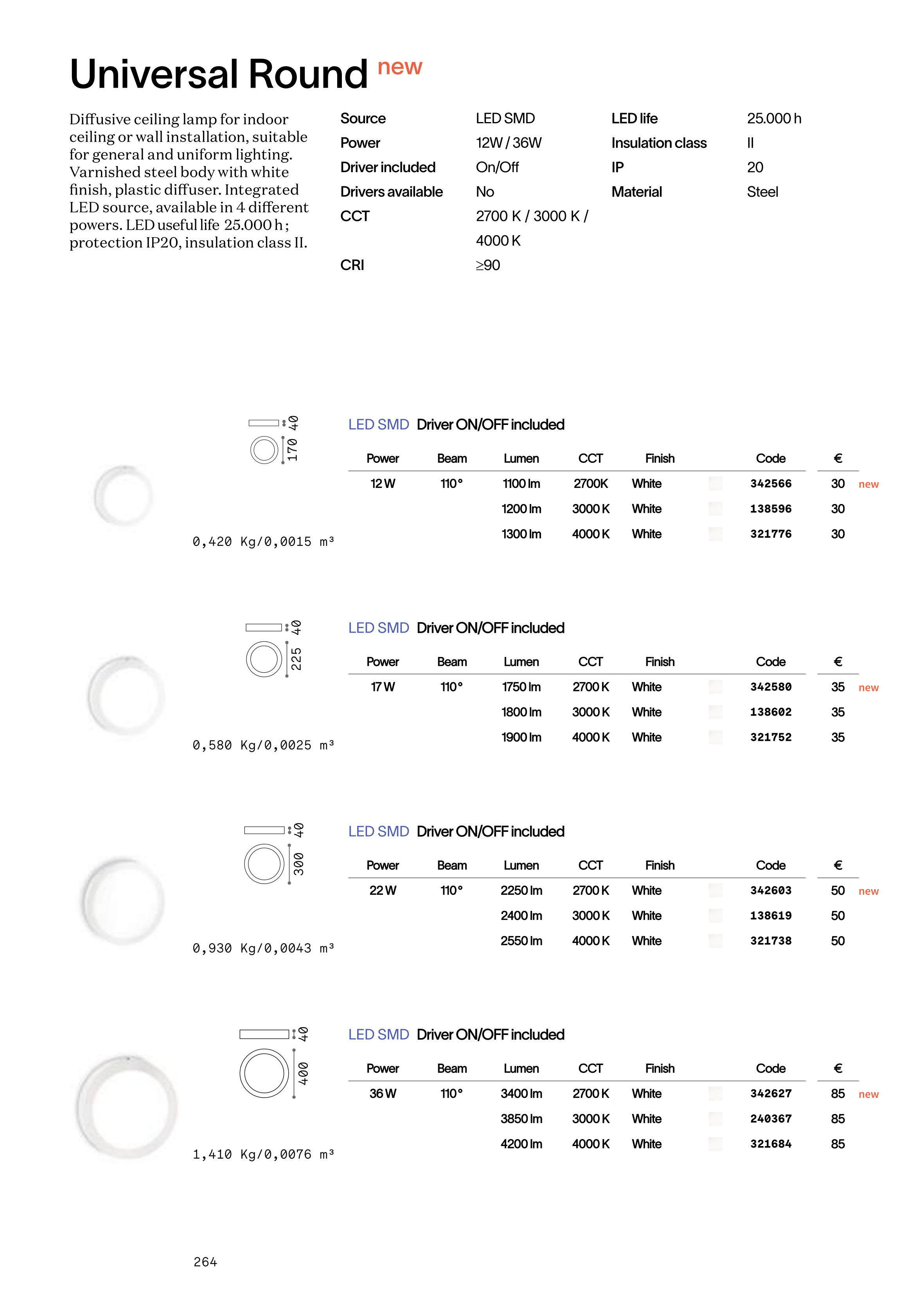 плафон, аплик UNIVERSAL PL D22 ROUND 4000K