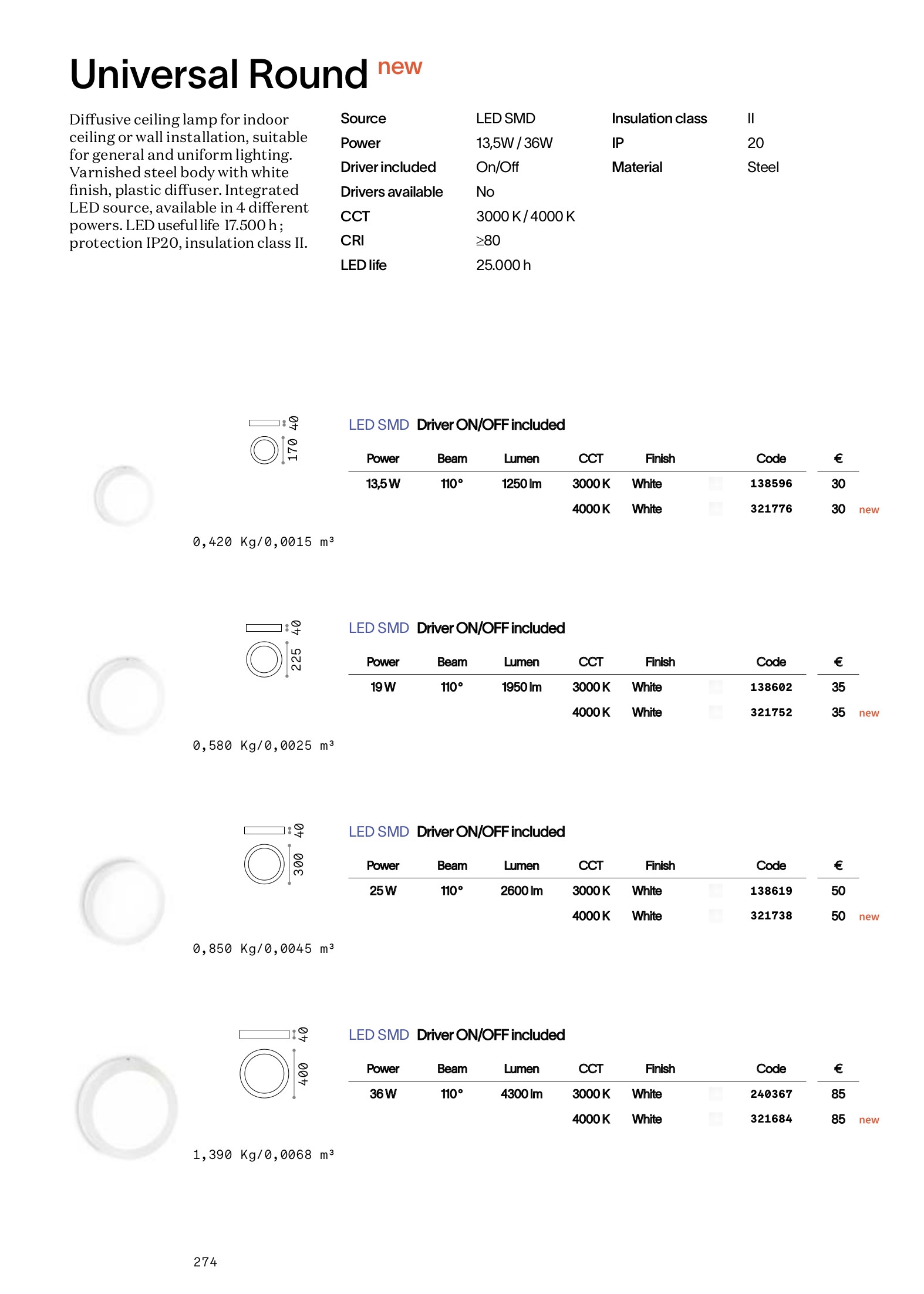 плафон, аплик UNIVERSAL PL D17 ROUND 4000K