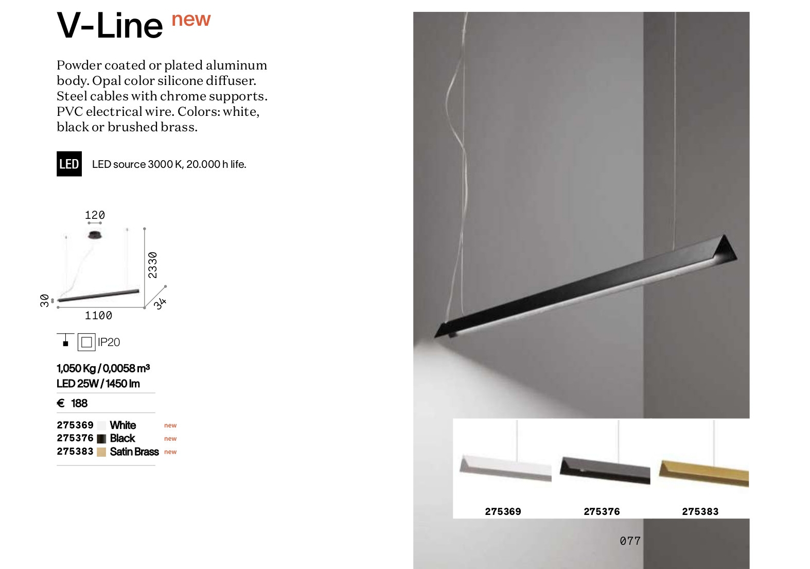 Осветителното тяло V-LINE SP OTTONE SPAZZOLATO ще осигури комфорт и естетика във всяко помещение, в което се постави. Цялостната визия и дизайн на лампата и вложените в изработката й материали, като алуминий с прахово покритие в цвят надраскан месинг, дифузер от силикон в опалово бяло, PVC кабел, стоманени обтегачи, ще допринесат за един неповторим стил. Благодарение на дългогодишния опит, качествените материали и строгия контрол на качеството на изработка на производителя Ideal-Lux (Италия), V-LINE SP OTTONE SPAZZOLATO е на високо европейско ниво.
