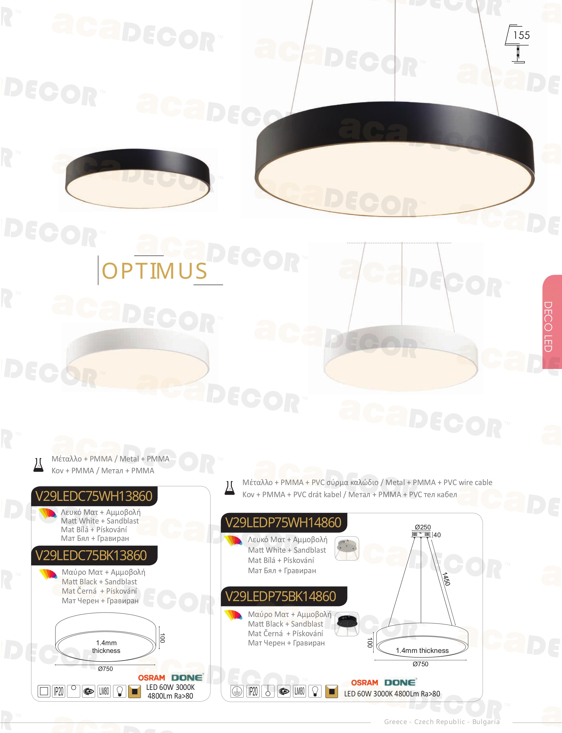 Лед плафон V29LEDC75BK ще осигури комфорт и естетика във всяко помещение, в което се постави. Цялостната визия и дизайн на led лампата и вложените в изработката й материали, като метал в цвят черен мат, разсейвател от опалово бял полимер, ще допринесат за един неповторим стил. Благодарение на дългогодишния опит в производството на лед осветление, качествените материали и строгия контрол на качеството на изработка на производителя ACA-Lighting (Гърция), V29LEDC75BK е на високо европейско ниво.