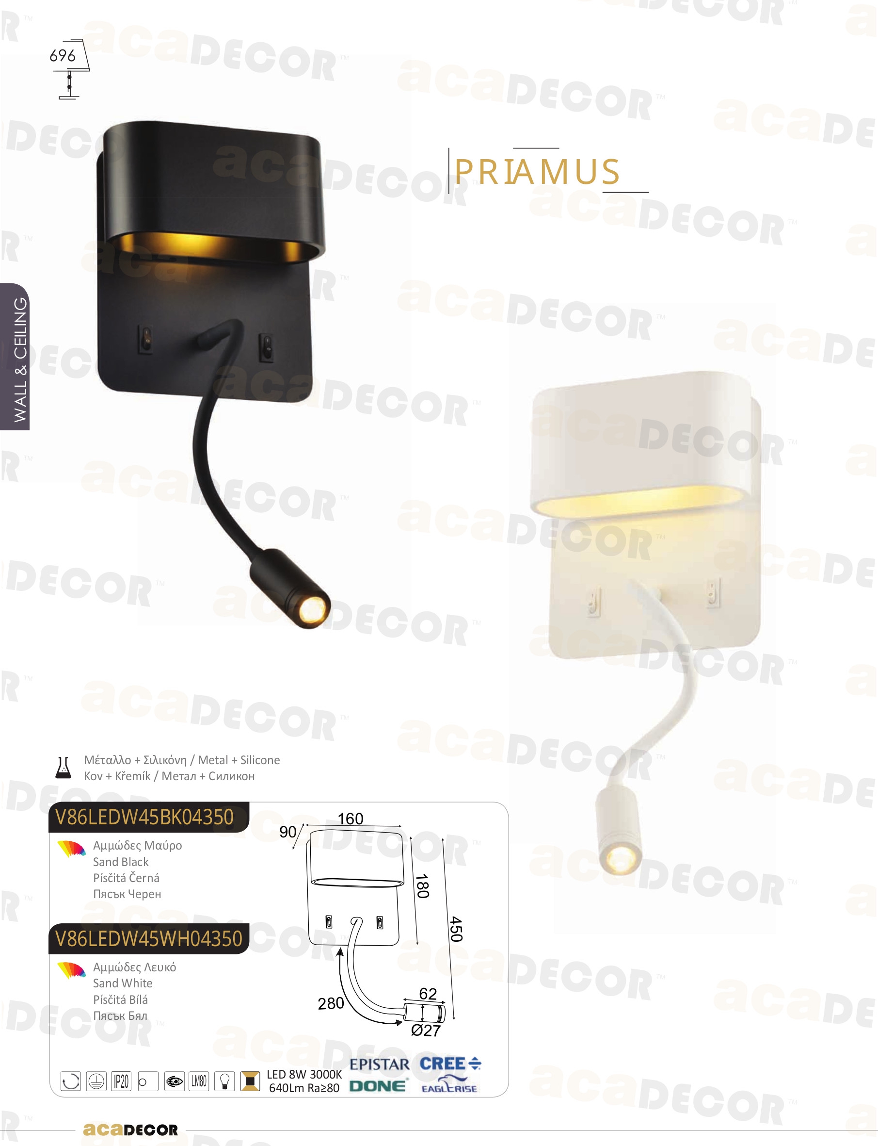 Лед аплик, спот лампа V86LEDW45WH ще осигури комфорт и естетика във всяко помещение, в което се постави. Цялостната визия и дизайн на led лампата и вложените в изработката й материали, като метал в пясъчно бяло, силиконово рамо в бял цвят, ще допринесат за един неповторим стил. Благодарение на дългогодишния опит в производството на лед осветление, качествените материали и строгия контрол на качеството на изработка на производителя ACA-Lighting (Гърция), V86LEDW45WH е на високо европейско ниво.