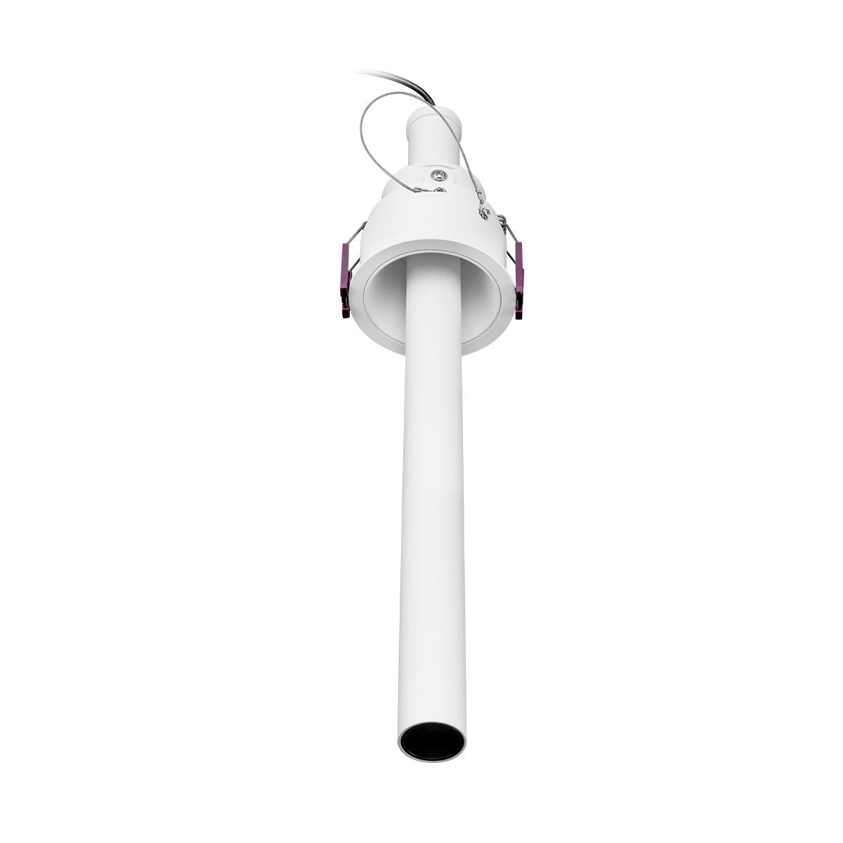конструкция от алуминий в бяло, корпус на проектора от екструдиран алуминиев профил в матово бял цвят, фасетиран полимерен рефлектор със силен гланц. дифузьор от прозрачен поликарбонат, тялото може да се накланя, удължава и прибира