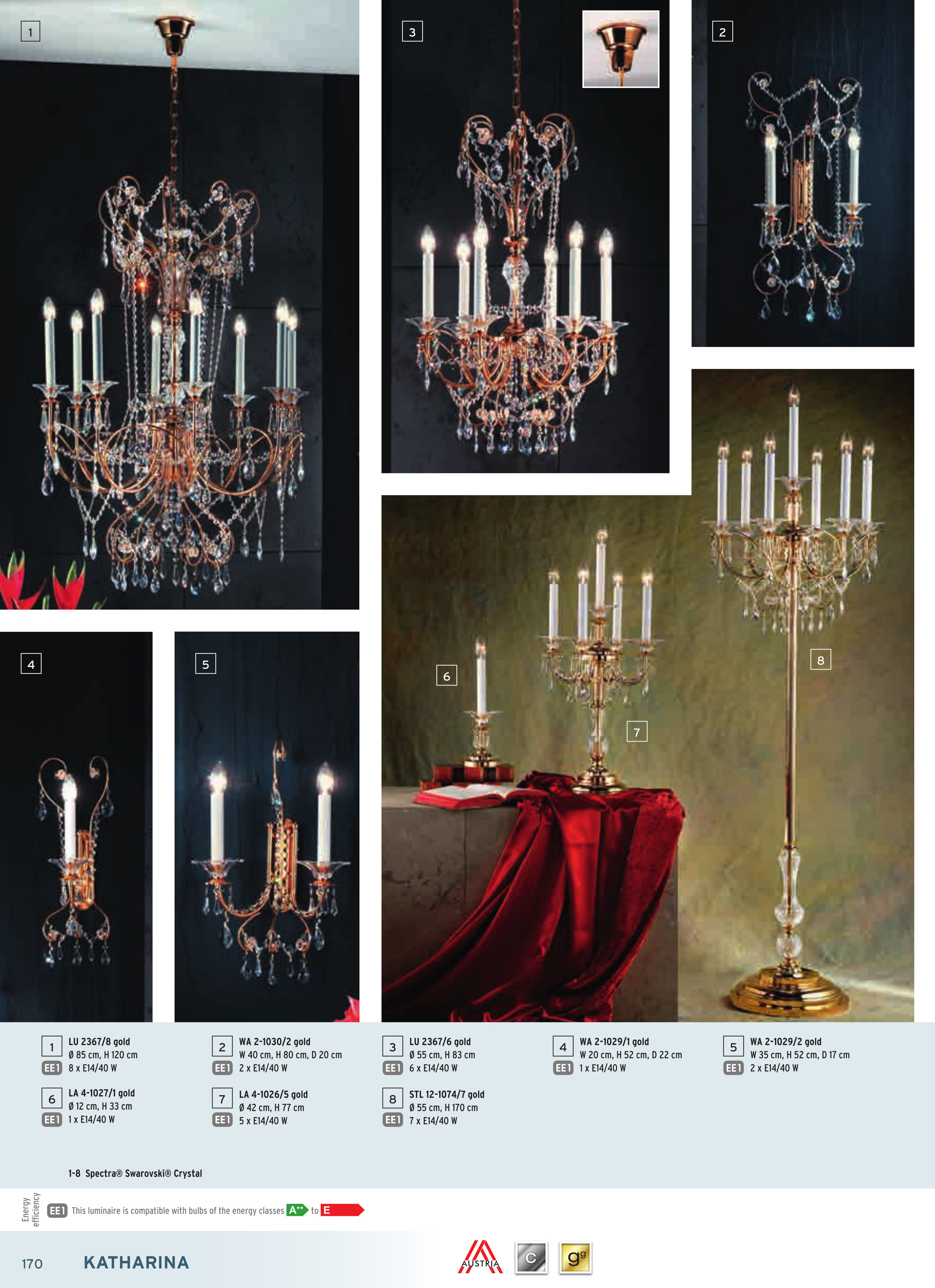 Осветителното тяло WA 2-1030/2 gold (2xE14) ще осигури комфорт и естетика във всяко помещение, в което се постави. Цялостната визия и дизайн на лампата и вложените в изработката й материали, като месинг, ръчно оформен с 24 карата златно покритие, кристали SPECTRA® Swarovski® Crystal с форма на перли, капки, бадеми, розетки, ще допринесат за един неповторим стил. Благодарение на дългогодишния опит, качествените материали и строгия контрол на качеството на изработка на производителя Orion (Австрия), WA 2-1030/2 gold (2xE14) е на високо европейско ниво.
