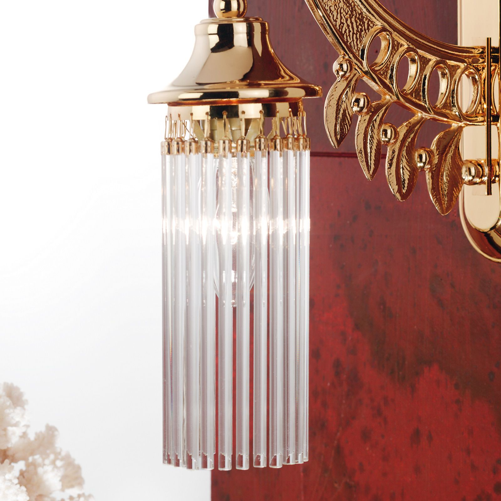 Осветителното тяло WA 2-1104/1 gold/Stabchen (1xE14) представлява аплик в дизайнерски стил. WA 2-1104/1 gold/Stabchen (1xE14) е от категорията осветителни тела и е подходящо за осветяване на различни помещения и пространства като: всекидневна / хол, спалня, кухня, трапезария, коридор, антре, стълбище, офис.