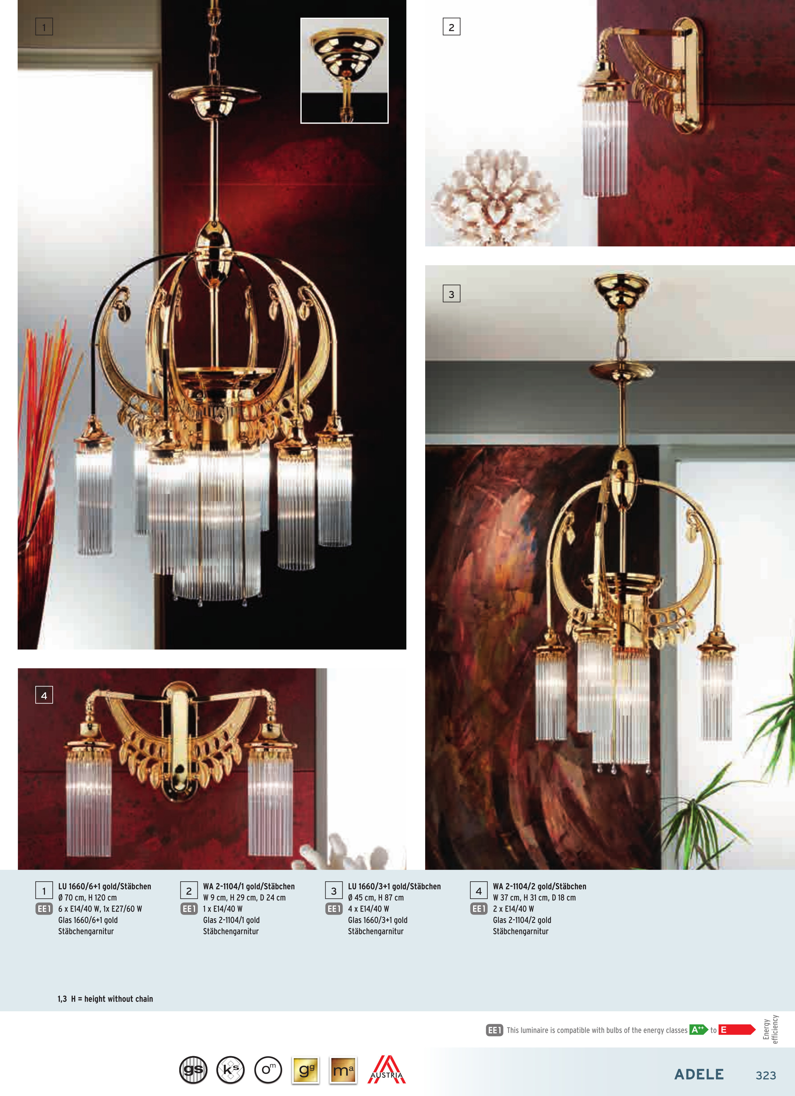 Осветителното тяло WA 2-1104/1 gold/Stabchen (1xE14) ще осигури комфорт и естетика във всяко помещение, в което се постави. Цялостната визия и дизайн на лампата и вложените в изработката й материали, като масивен месинг с 24 карата златно покритие, стъклени пръчици с цилиндрична форма, ще допринесат за един неповторим стил. Благодарение на дългогодишния опит, качествените материали и строгия контрол на качеството на изработка на производителя Orion (Австрия), WA 2-1104/1 gold/Stabchen (1xE14) е на високо европейско ниво.
