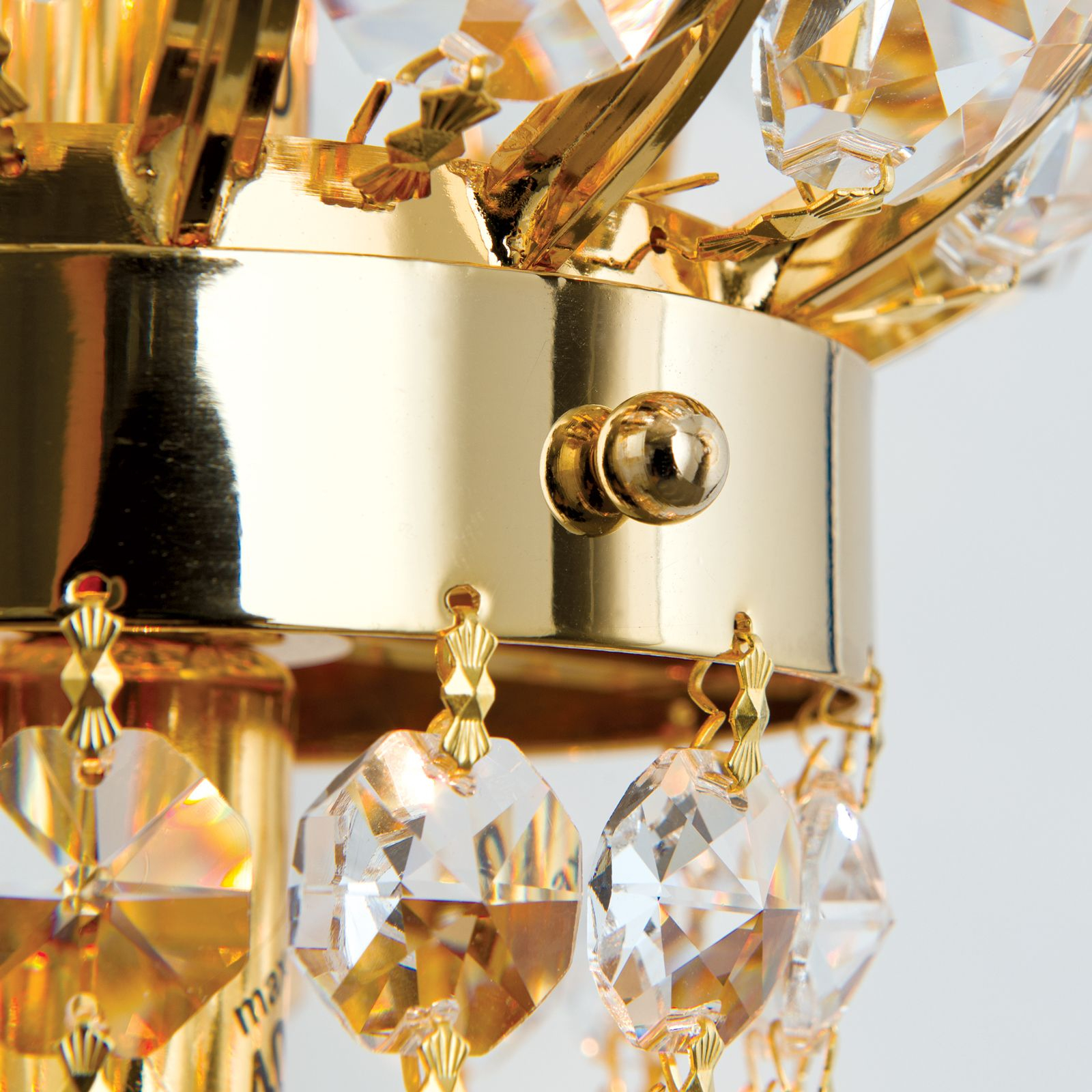 масивен месинг с 24 карата златно покритие, многобройни осмоъгълни кристали, кристални капки, кристални призми и кристални сфери SCHÖLER CRYSTAL®