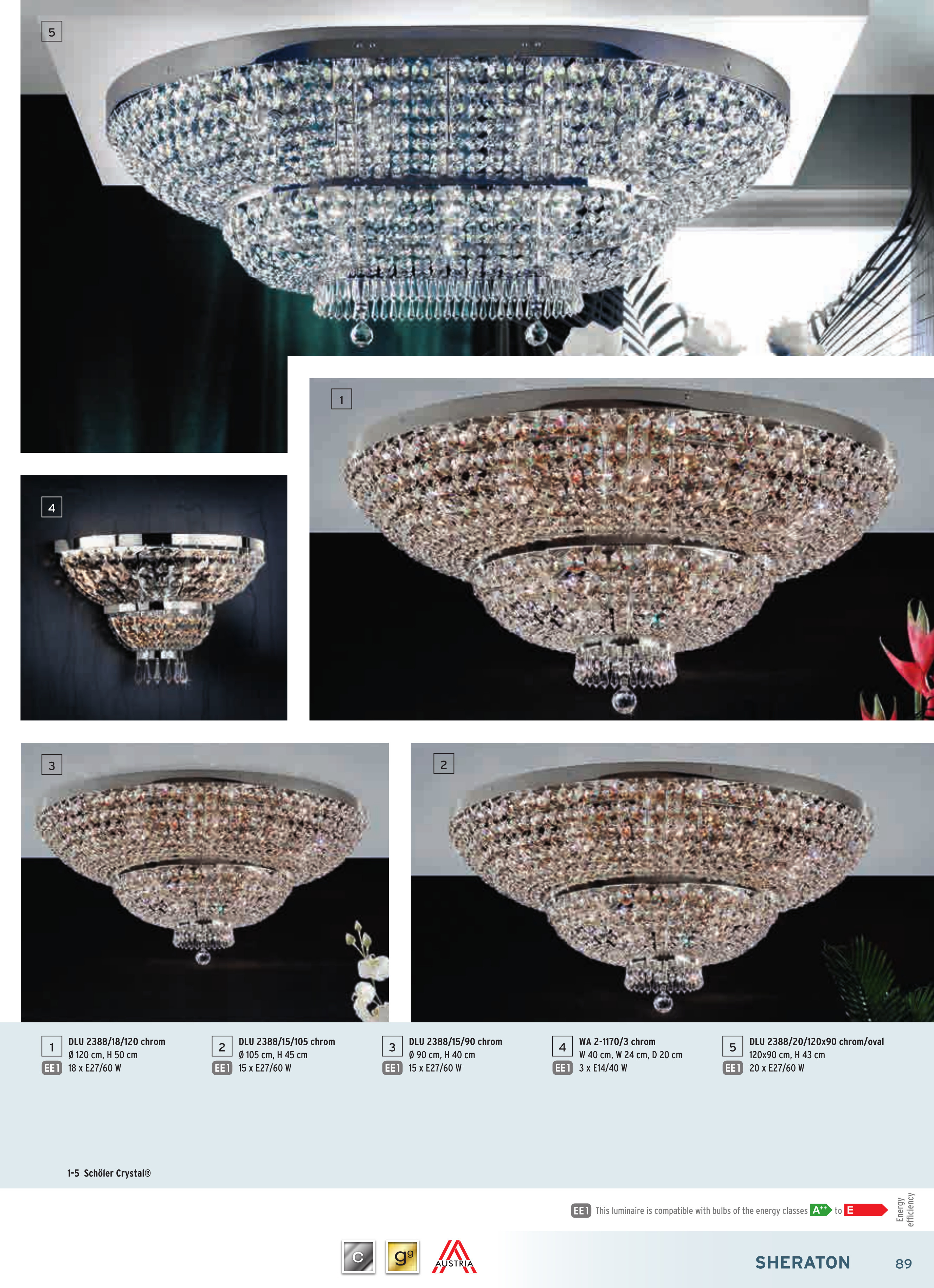За стила и естетиката на обстановката допринасят, както цялостната визия и дизайн на осветителното тяло, така и вложените в изработката качествени материали, като: хромиран масивен месинг, вериги от осмоъгълни кристали SCHÖLER CRYSTAL®.