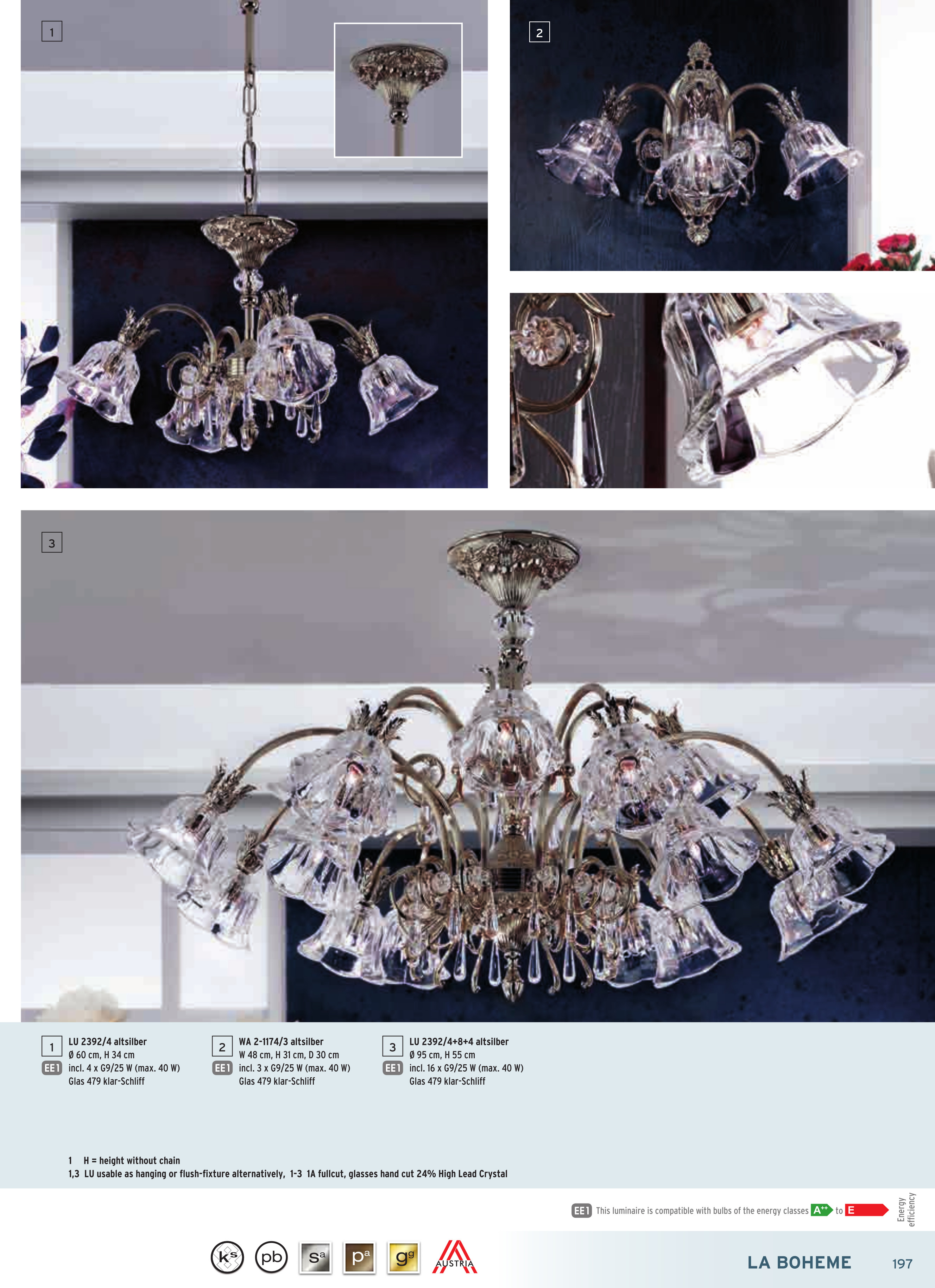 Осветителното тяло WA 2-1174/3 altsilber/479 Schliff ще осигури комфорт и естетика във всяко помещение, в което се постави. Цялостната визия и дизайн на лампата и вложените в изработката й материали, като масивен месинг с покритие от антично сребро, изцяло шлифовано кристално стъкло 1A, ще допринесат за един неповторим стил. Благодарение на дългогодишния опит, качествените материали и строгия контрол на качеството на изработка на производителя Orion (Австрия), WA 2-1174/3 altsilber/479 Schliff е на високо европейско ниво.