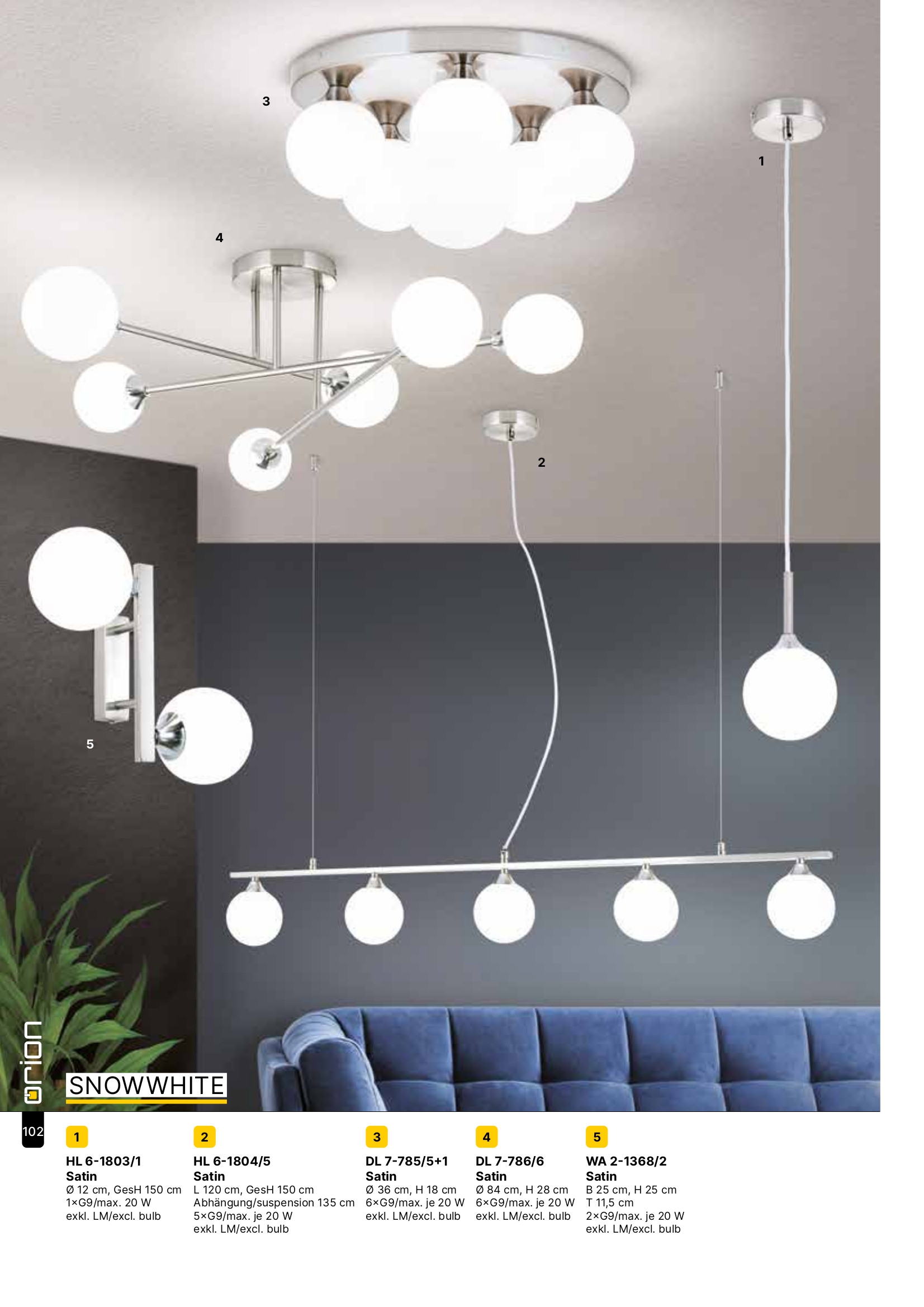WA 2-1368/2 satin (exkl. 2xG9/20W), представлявайки аплик, може да бъде използвано за осветление в различни помещения и пространства, като: всекидневна / хол, спалня, кухня, трапезария, коридор, антре, стълбище, офис. Качеството на изработката на тази лампа от Orion (Австрия) е на над средно европейско равнище, благодарение на дългогодишния опит, строгия контрол на качествените характеристики и високите технологии, приложени в производството на осветителни тела за интериорно осветление.