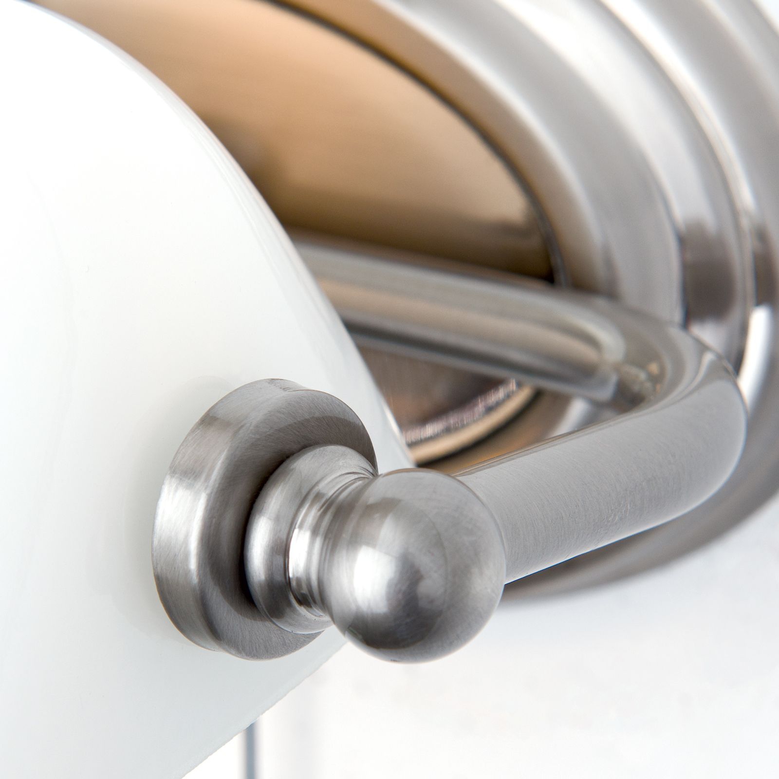 масивен месинг в цвят хром сатен, стъкло в опалово бял цвят