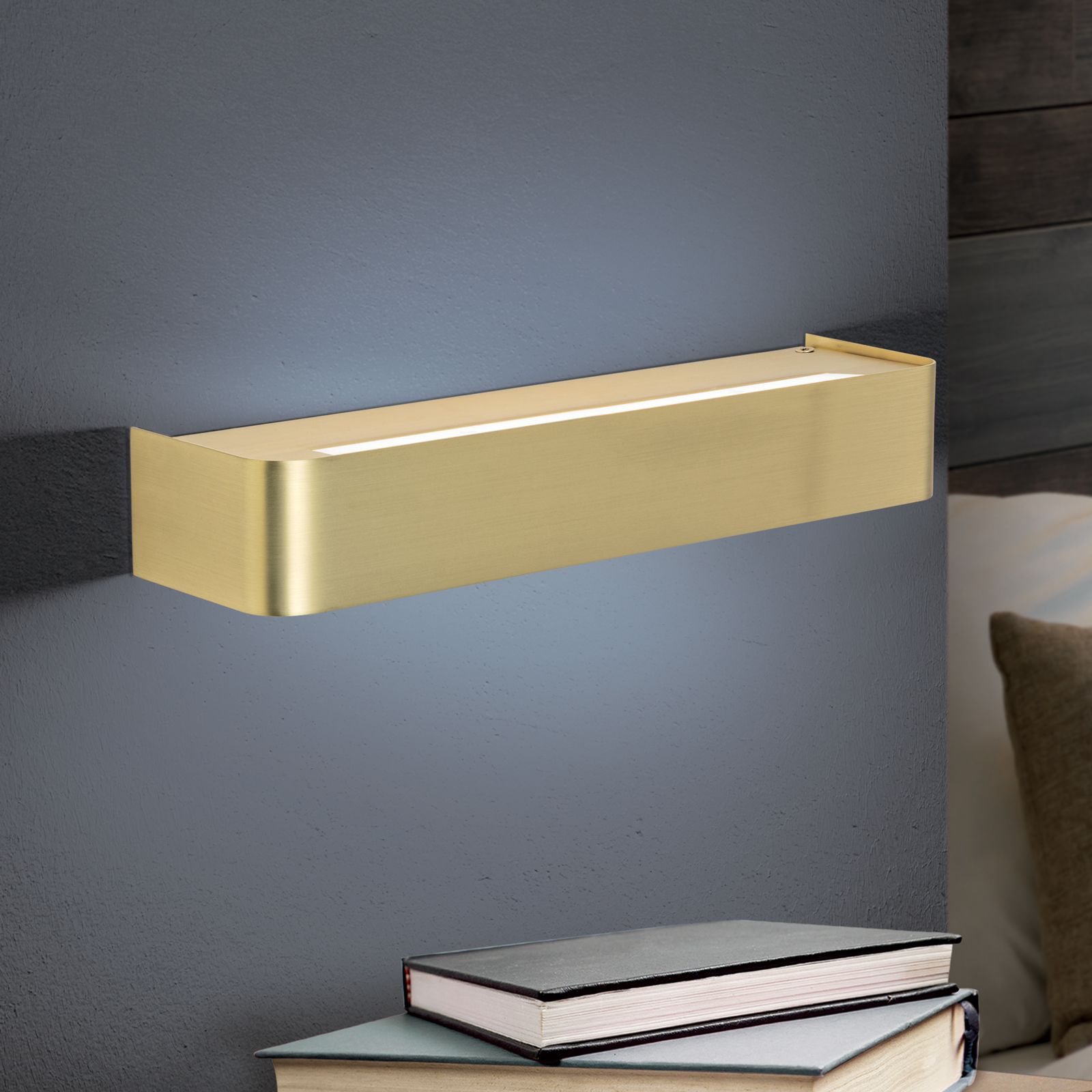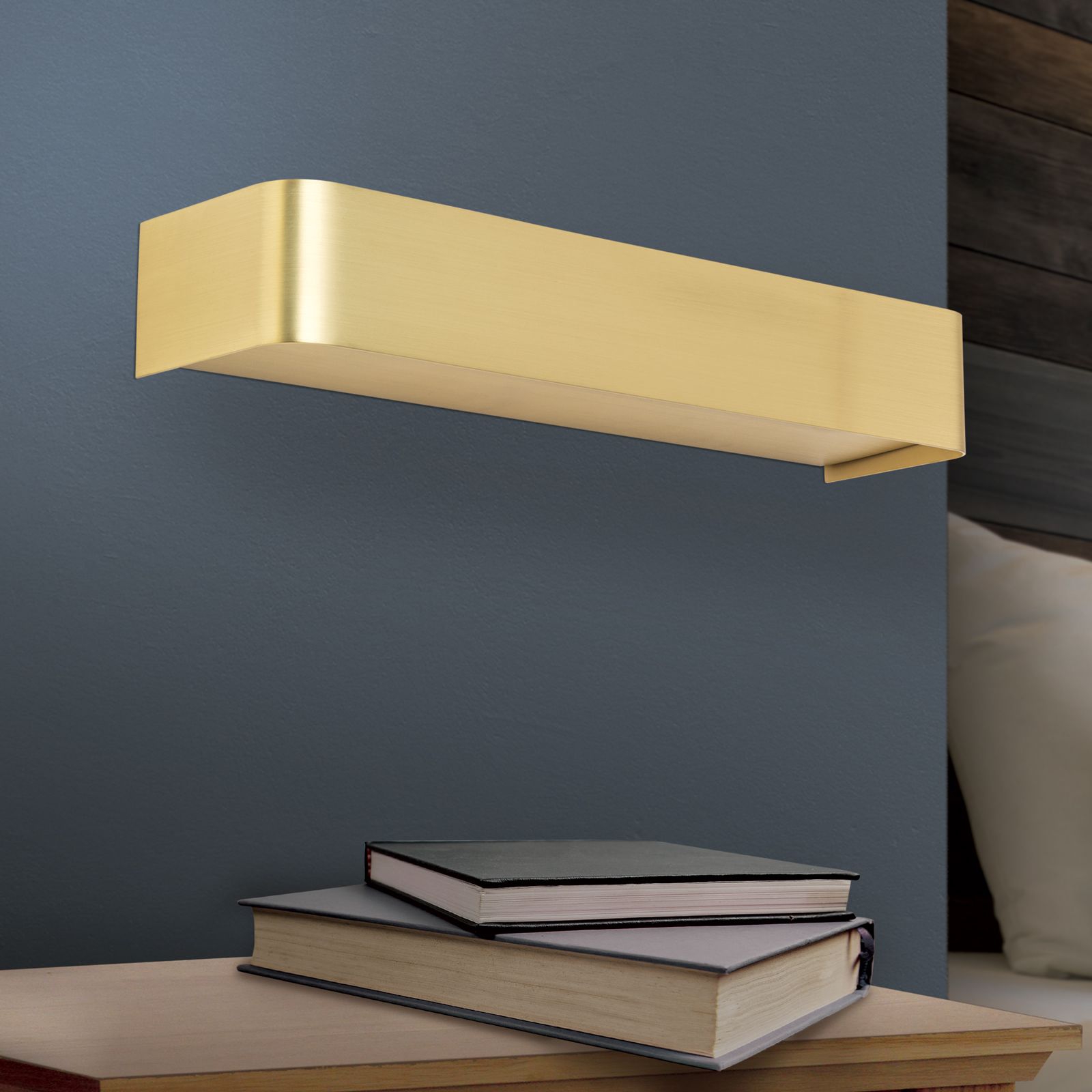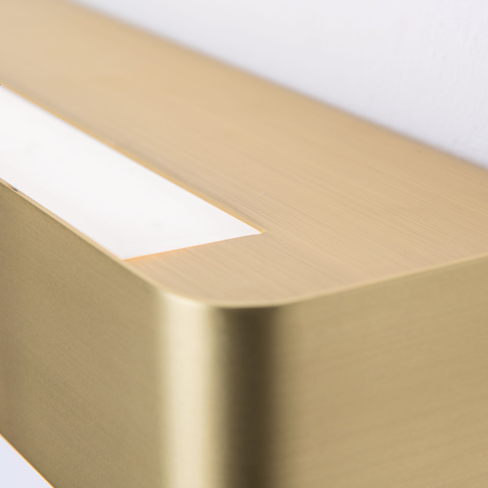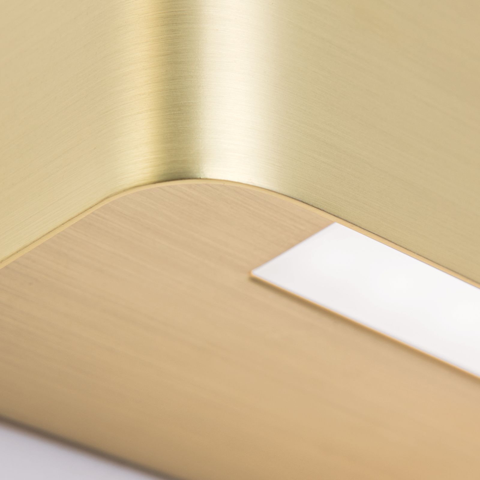 стомана в цвят матиран месинг, полимер в цвят мат опал, индиректна димируема светлина