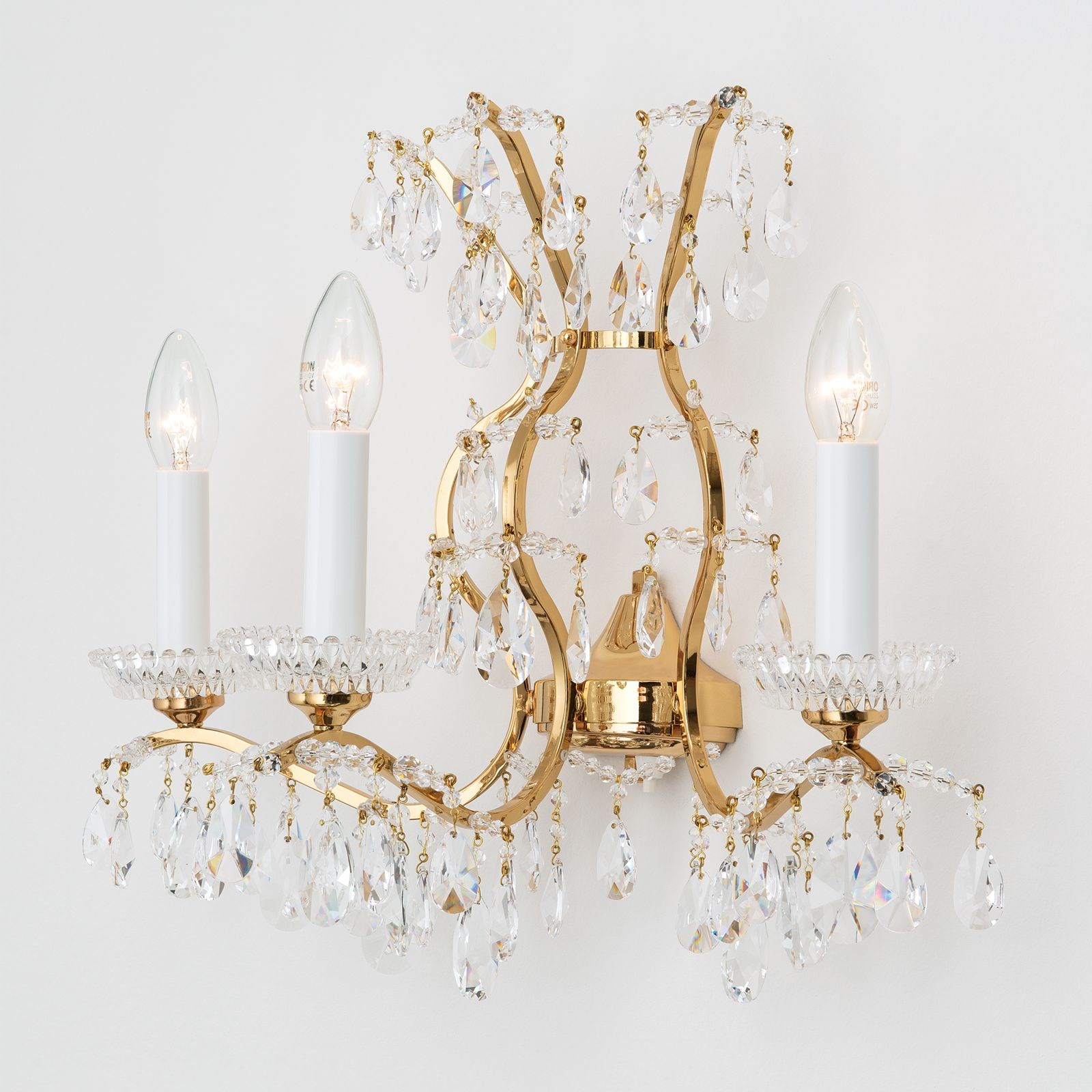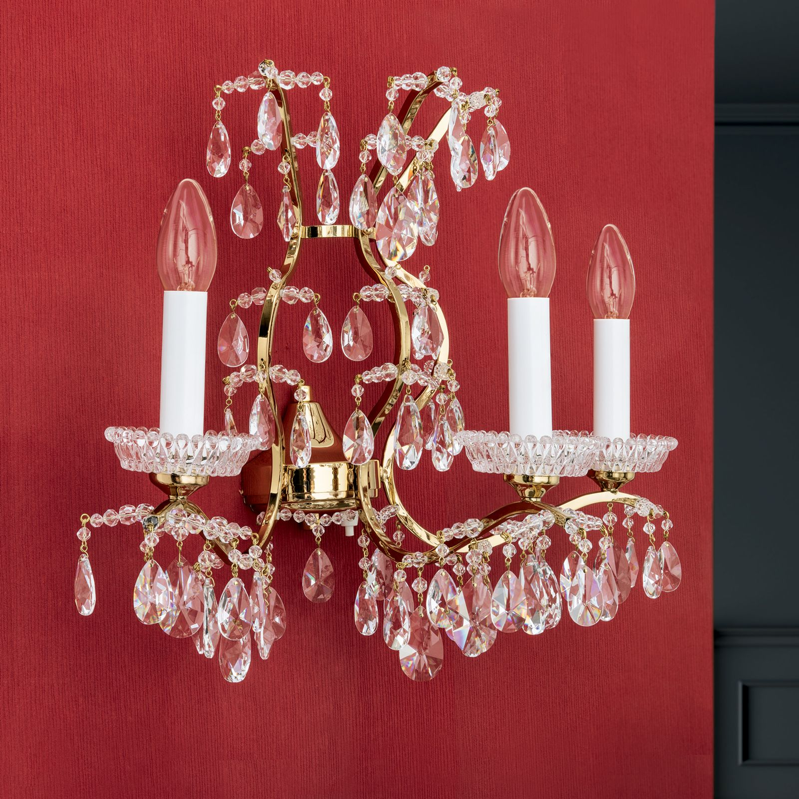 Осветителното тяло WA 2-195/3 gold (3xE14) представлява аплик в класически стил. WA 2-195/3 gold (3xE14) е от категорията осветителни тела и е подходящо за осветяване на различни помещения и пространства като: всекидневна / хол, спалня, кухня, трапезария, коридор, антре, стълбище, офис.