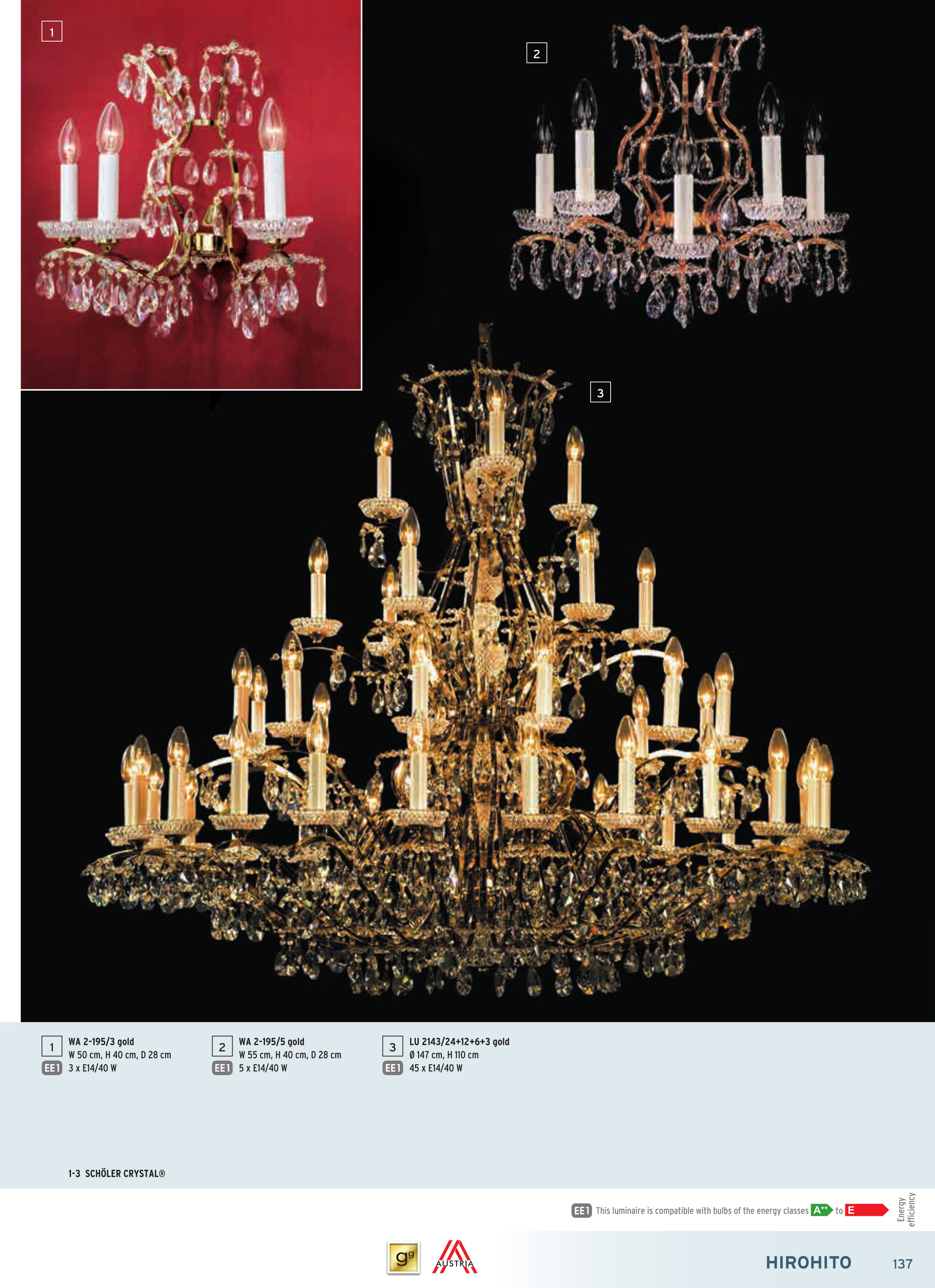 Осветителното тяло WA 2-195/3 gold (3xE14) ще осигури комфорт и естетика във всяко помещение, в което се постави. Цялостната визия и дизайн на лампата и вложените в изработката й материали, като позлатен масивен месинг, шлифовани и фасетирени кристали, ще допринесат за един неповторим стил. Благодарение на дългогодишния опит, качествените материали и строгия контрол на качеството на изработка на производителя Orion (Австрия), WA 2-195/3 gold (3xE14) е на високо европейско ниво.