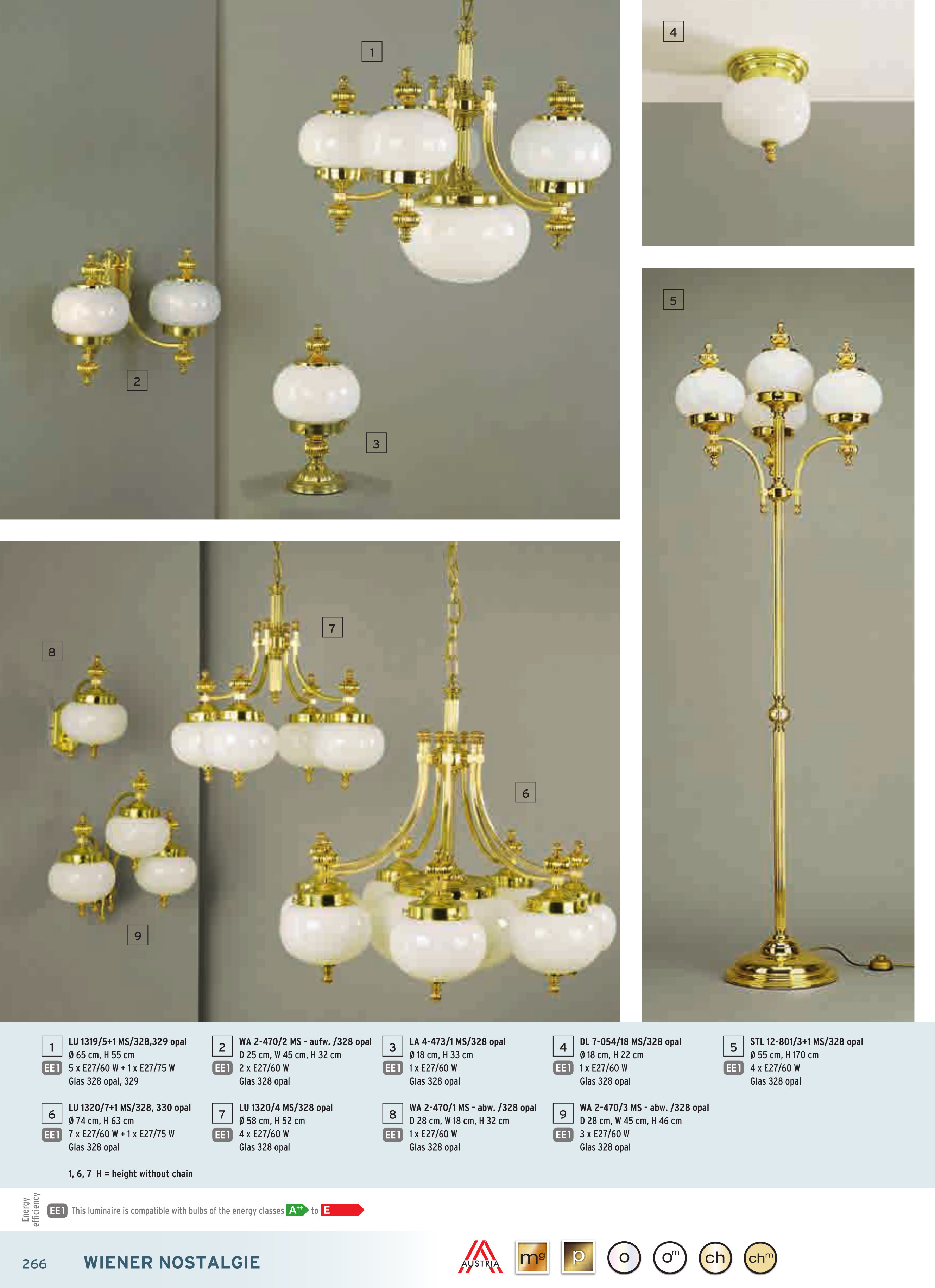За стила и естетиката на обстановката допринасят, както цялостната визия и дизайн на осветителното тяло, така и вложените в изработката качествени материали, като: масивен месинг с покритие от блестящ месинг, стъкло в цвят бял опал мат.