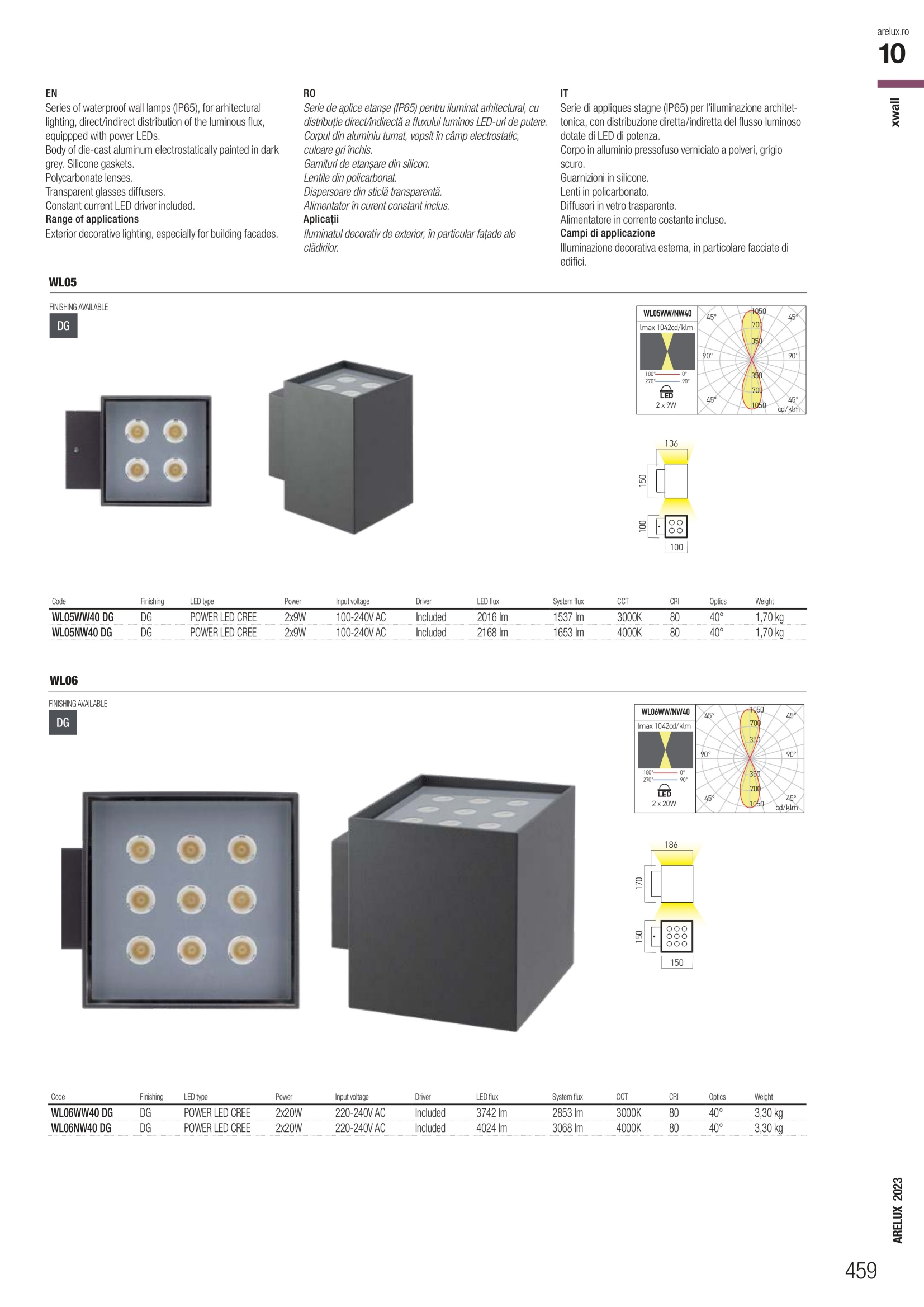 Осветителното тяло WL05WW40 DG ще осигури комфорт и естетика във всяко помещение, в което се постави. Цялостната визия и дизайн на лампата и вложените в изработката й материали, като отлят алуминий с електростатично нанесено покритие в тъмно сив цвят, силиконови уплътнители, лещи от поликарбонат, дифузери от прозрачно стъкло, ще допринесат за един неповторим стил. Благодарение на дългогодишния опит, качествените материали и строгия контрол на качеството на изработка на дизайнерската линия Redo Arelux на производителя Redo (Румъния), WL05WW40 DG е на високо европейско ниво.