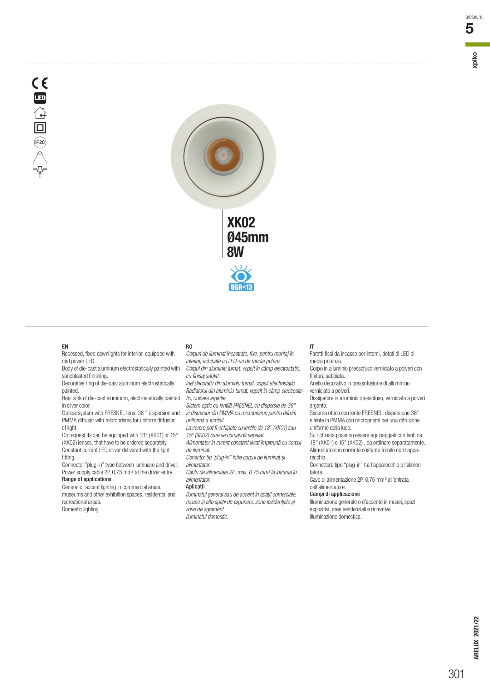 Лед луничка / луна XK02UWW SBK/GD ще осигури комфорт и естетика във всяко помещение, в което се постави. Цялостната визия и дизайн на led лампата и вложените в изработката й материали, като отлят алуминий в цвят пясъчно черно, декоративен ринг от отлят алуминий в цвят злато, дифузер от полимер (РММА) с микропризми за равномерно разпръскване на светлината, ще допринесат за един неповторим стил. Благодарение на дългогодишния опит в производството на лед осветление, качествените материали и строгия контрол на качеството на изработка на дизайнерската линия Redo Arelux на производителя Redo (Румъния), XK02UWW SBK/GD е на високо европейско ниво.
