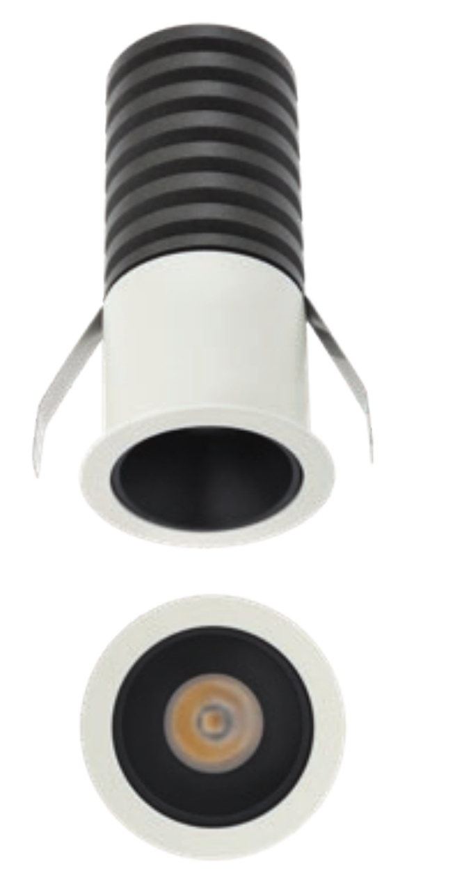 отлят алуминий в цвят пясъчно бяло, декоративен ринг от отлят алуминий в черно, дифузер от полимер (РММА) с микропризми за равномерно разпръскване на светлината
