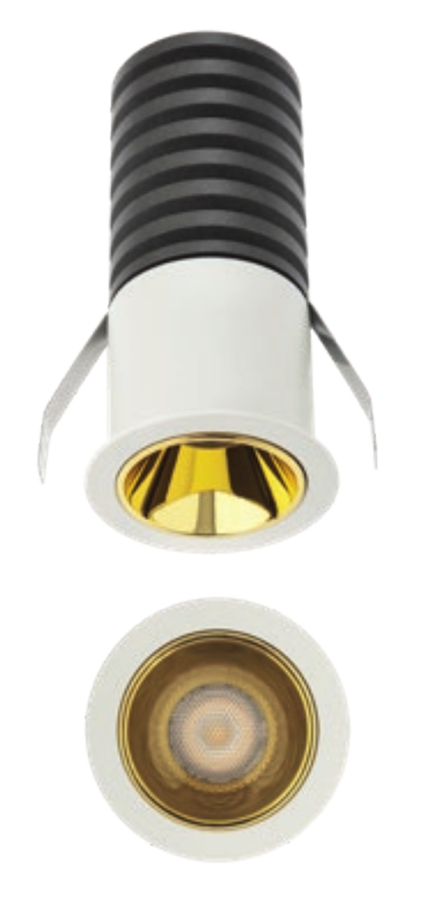 отлят алуминий в цвят пясъчно бяло, декоративен ринг от отлят алуминий в цвят злато, дифузер от полимер (РММА) с микропризми за равномерно разпръскване на светлината
