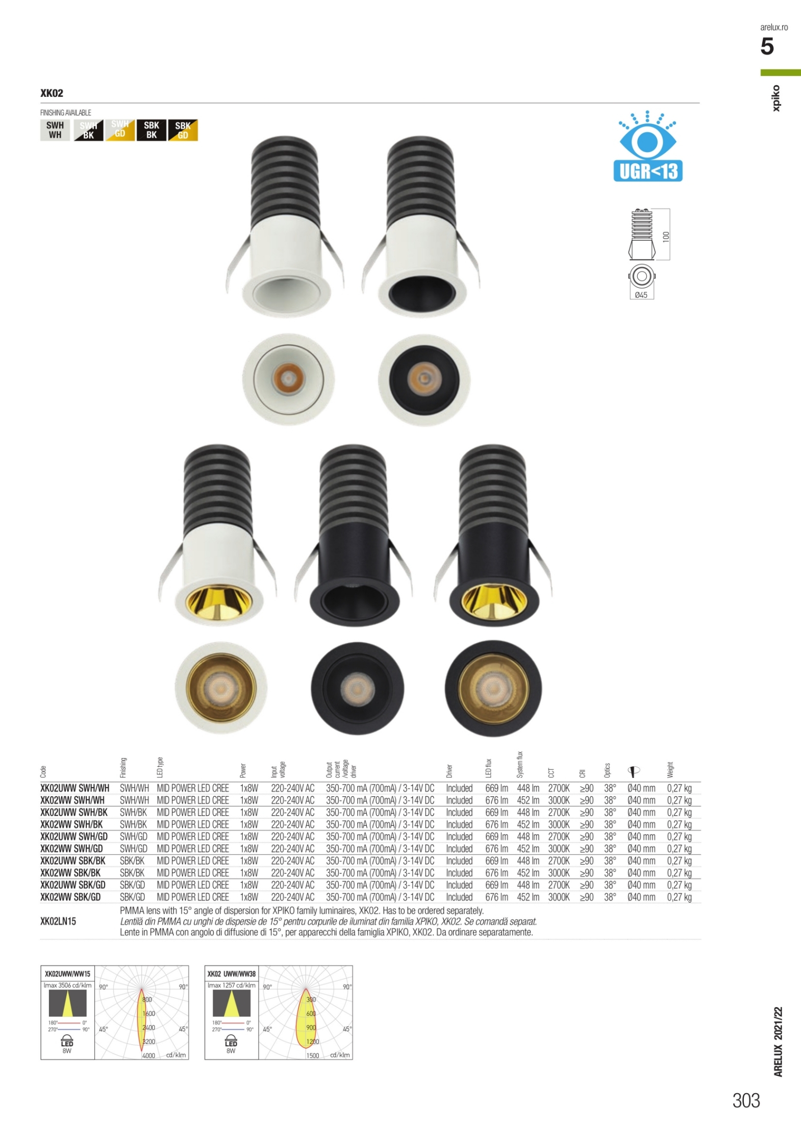 Лед луничка / луна XK02WW SWH/WH ще осигури комфорт и естетика във всяко помещение, в което се постави. Цялостната визия и дизайн на led лампата и вложените в изработката й материали, като отлят алуминий в цвят пясъчно бяло, декоративен ринг от отлят алуминий в бяло, дифузер от полимер (РММА) с микропризми за равномерно разпръскване на светлината, ще допринесат за един неповторим стил. Благодарение на дългогодишния опит в производството на лед осветление, качествените материали и строгия контрол на качеството на изработка на дизайнерската линия Redo Arelux на производителя Redo (Румъния), XK02WW SWH/WH е на високо европейско ниво.