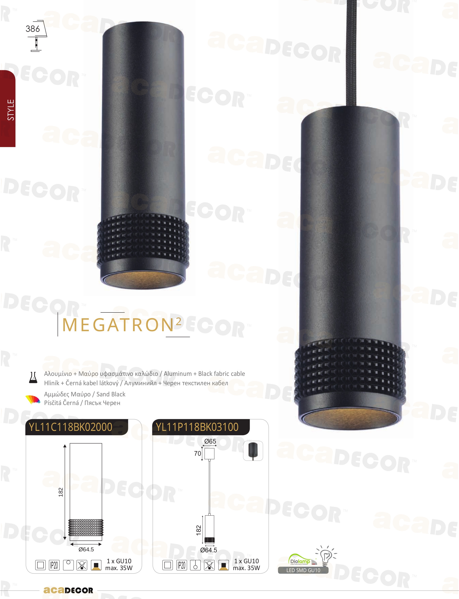 Осветителното тяло YL11C118BK ще осигури комфорт и естетика във всяко помещение, в което се постави. Цялостната визия и дизайн на лампата и вложените в изработката й материали, като алуминий в цвят черен мат, кабел с черна текстилна оплетка, ще допринесат за един неповторим стил. Благодарение на дългогодишния опит, качествените материали и строгия контрол на качеството на изработка на производителя ACA-Lighting (Гърция), YL11C118BK е на високо европейско ниво.