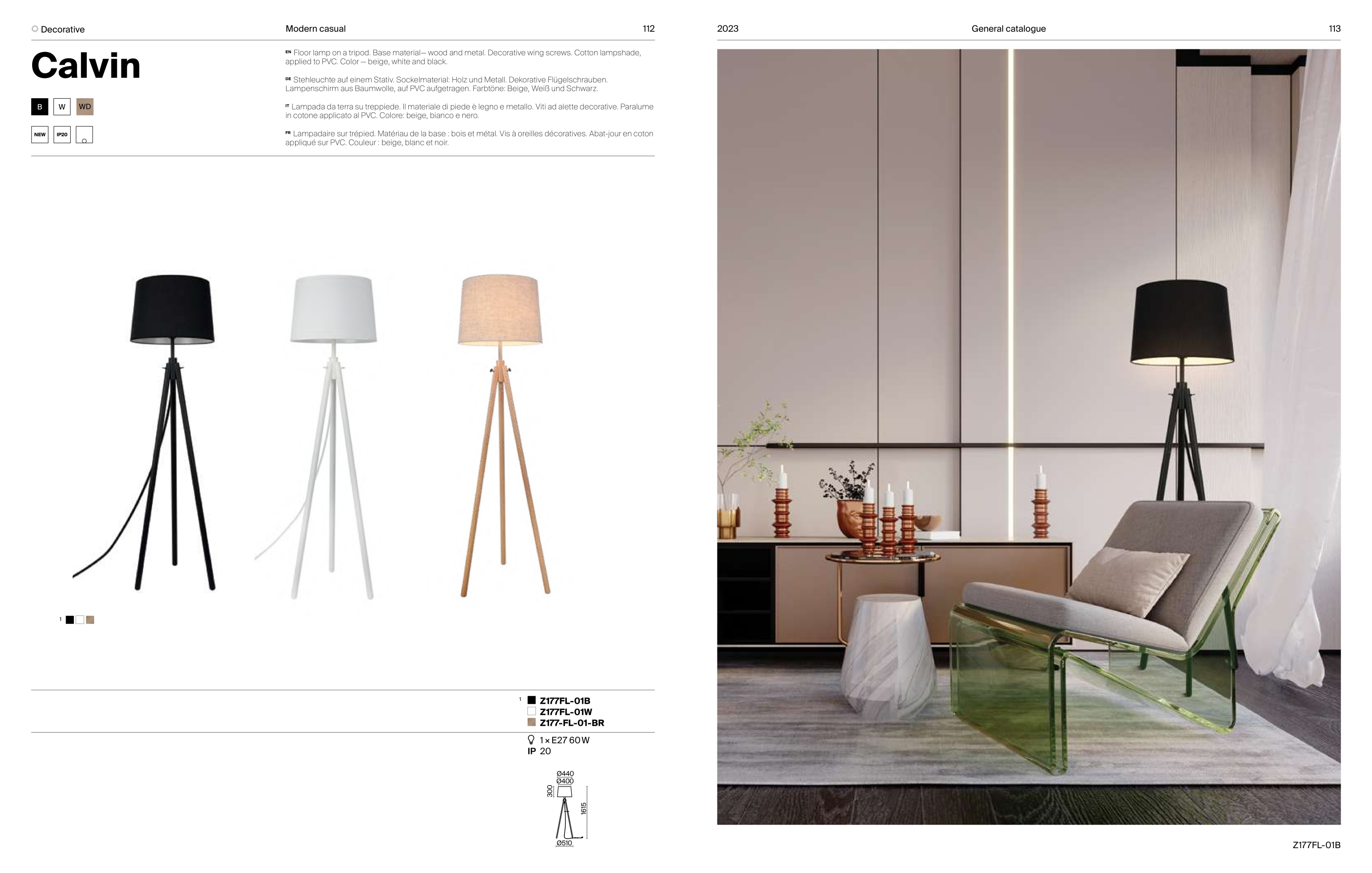 Осветителното тяло Z177FL-01B ще осигури комфорт и естетика във всяко помещение, в което се постави. Цялостната визия и дизайн на лампата и вложените в изработката й материали, като дърво, метал и текстилен абажур върху PVC подплата в черен цвят, декоратифвни крилчати винтове, захранващ кабел, щепсел и ключ, ще допринесат за един неповторим стил. Благодарение на дългогодишния опит, качествените материали и строгия контрол на качеството на изработка на производителя Maytoni (Германия), Z177FL-01B е на високо европейско ниво.