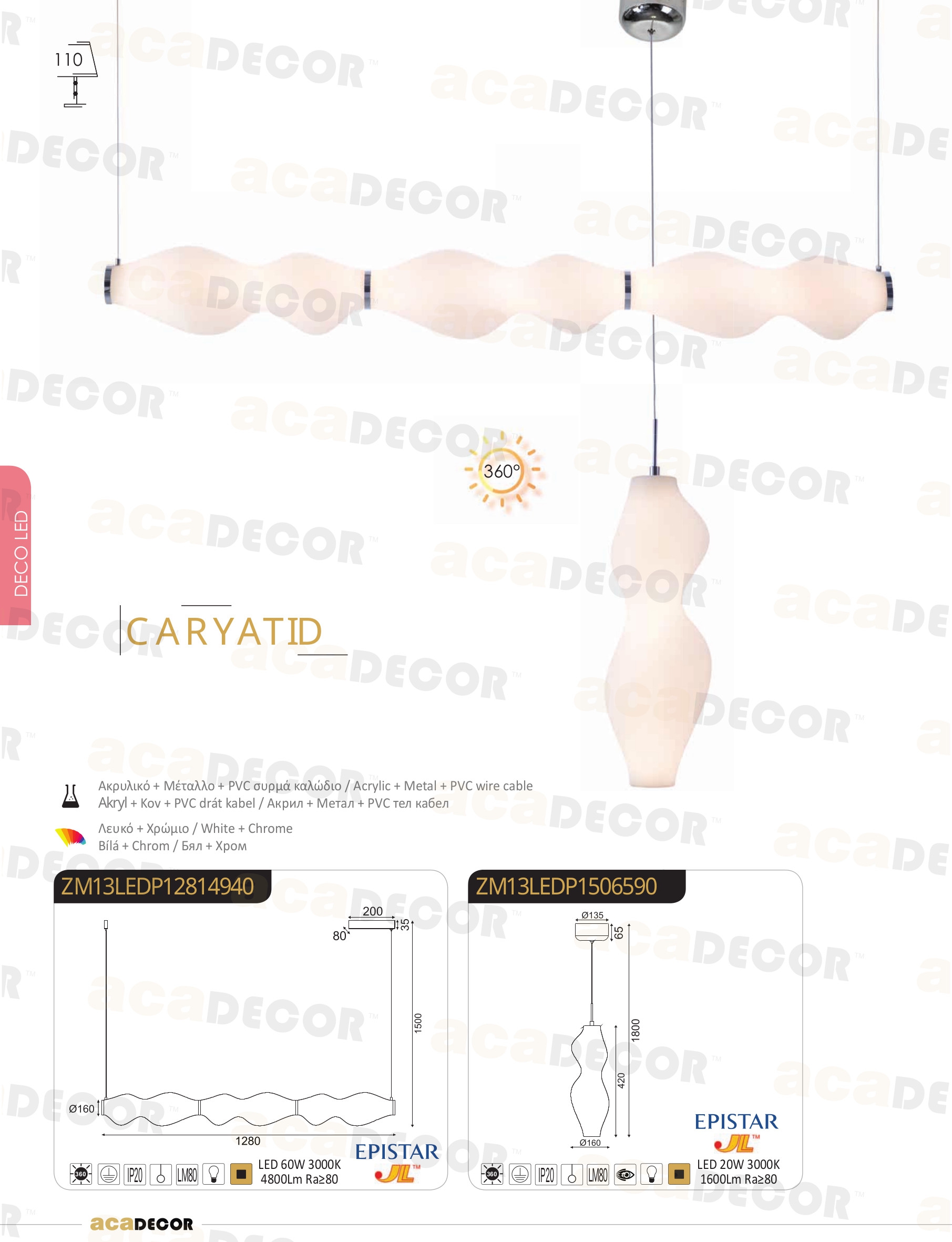 Осветителното тяло ZM13LEDP15 ще осигури комфорт и естетика във всяко помещение, в което се постави. Цялостната визия и дизайн на лампата и вложените в изработката й материали, като полимер в бял цвят, метал в цвят хром, ще допринесат за един неповторим стил. Благодарение на дългогодишния опит, качествените материали и строгия контрол на качеството на изработка на производителя ACA-Lighting (Гърция), ZM13LEDP15 е на високо европейско ниво.