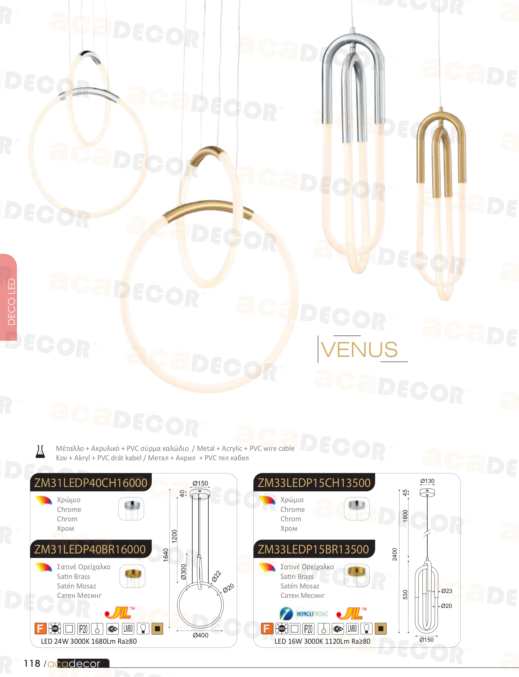 Лед полилей ZM31LEDP40BR ще осигури комфорт и естетика във всяко помещение, в което се постави. Цялостната визия и дизайн на led лампата и вложените в изработката й материали, като метал в цвят сатен месинг, ще допринесат за един неповторим стил. Благодарение на дългогодишния опит в производството на лед осветление, качествените материали и строгия контрол на качеството на изработка на производителя ACA-Lighting (Гърция), ZM31LEDP40BR е на високо европейско ниво.