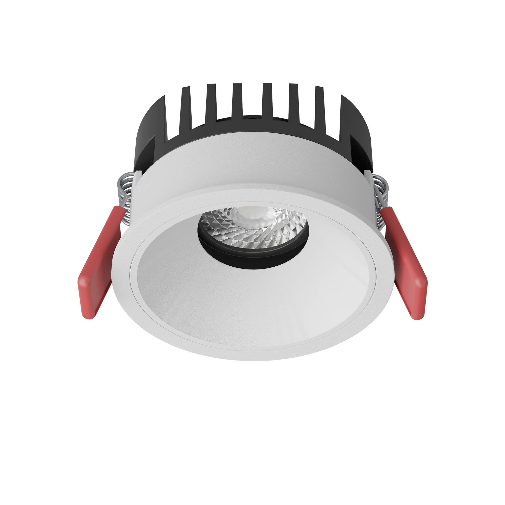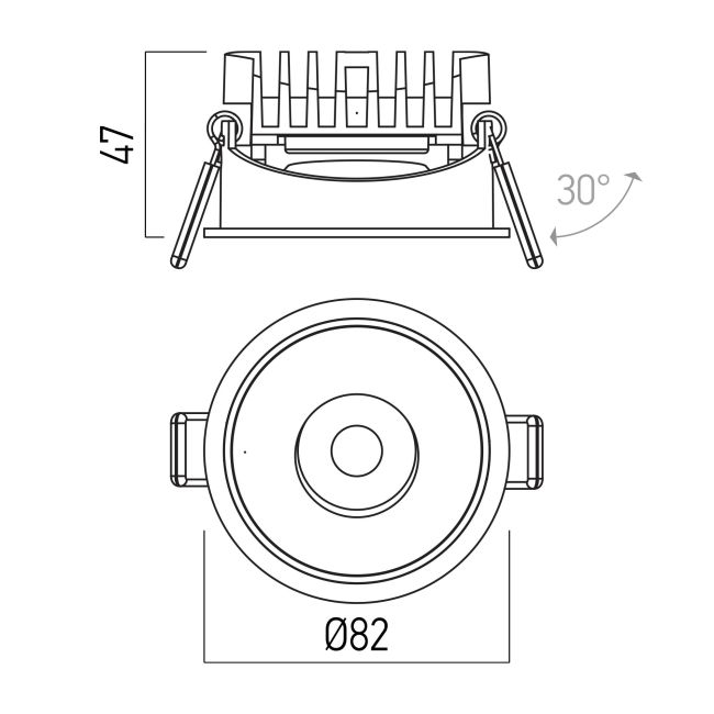 алуминиев профил с пясъкоструйно покритие в бял цвят, радиатор от отлят алуминий в черен цвят, декоративен пръстен от полипропилен в бял цвят, регулируема посока на светене